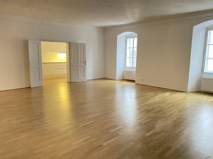 DELTA Immobilien bietet eine elegante Altbau-Wohnung mit tollen Details mit ca. 190 m² Wohnfläche im 2. Liftstock eines historischen Altstadthauses in wunderschöner Lage am Waagplatz mit Blick in die Judengasse. Die Wohnung besticht durch eine moderne, hochwertige Ausstattung in Kombination mit Gewölbedecken und Marmorsäulen. Sie wurde 2009 im Zuge der Gebäudesanierung komplett umgebaut und modernisiert. Nettomiete: € 1.058,09 Betriebskosten: € 431,10 Heizkosten: € 190,58 USt:€ 101,63 Gesamtmiete (inkl. USt.): € 1.785,81, Kaution: 3 BMM, Provision: 2 MM+20%Mwst. Verfügbar ab sofort! Alle Vorteile im Überblick: • zentral begehbar • sehr großer Eingangsbereich mit Abstellraum • sehr großes Wohn-Esszimmer mit Blick in die Judengasse • modern möblierte Küche mit Fenster • 2 getrennt begehbare Schlafzimmer nebeneinander, eines der beiden Schlafzimmer hat Zugang zum 1. Bad "en Suite" (Badewanne + Dusche), • kleiner Zwischenflur als Verbindung von der Eingangsdiele zum • 3. Schlafzimmer (Blick Richtung Döllerergässchen) inkl 2. Bad "en Suite" (Badewanne + Dusche, WC) • weiteren Toilette • Heizungsart: ZH, Fernwärme, • HWB: 107kWh/m².a • und mehr. Lage: Waagplatz/Judengasse/Getreidegasse/Residenzplatz Auf die Doppelmaklertätigkeit wird hingewiesen. Interessiert? Kontaktieren Sie uns für weitere Informationen. Täglich neue und zahlreiche unveröffentlichte Objekte finden Sie unter www.delta-immobilien.at!