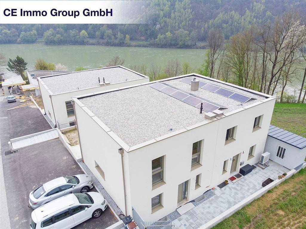 Es wurden 2 Doppelhäuser in Niedrigstenergie, vollunterkellert und in ziegelmassiver Baumeisterqualität errichtet. Bei der Planung wurde besonderer Wert auf die optimale Raumausrichtung zur Nutzung der natürlichen Belichtung gelegt. Die Gärten sind alle Richtung Süden bzw. Südwesten ausgerichtet. Der einzigartige Donaublick wird im Sommer beim Verweilen auf der Terrasse das Urlaubsfeeling erhöhen. Eine Wohnbauförderung über mind. € 71.000,- vom Land OÖ ist ebenfalls möglich! Im Gesamtkaufpreis ist bereits der Grundanteil, Ihre belagsfertige Doppelhaushälfte, die Vollunterkellerung (ebenfalls belagsfertig!), als auch die anteilsmäßigen Allgemeinflächen enthalten. Wahlweise kann auch eine Garage gegen Aufpreis ausgeführt werden. Zu jedem Haus gibt es einen Küchengutschein über € 2.000,- !! Einheiten: Top 1: Gfl 258 m² Wfl 106 m² KP € 380.627,-- Top 2: Gfl 263 m² Wfl 106 m² KP € 382.114,-- Top 3: Gfl 206 m² Wfl 106 m² KP € 361.068,-- Top 4: Gfl 273 m² Wfl 106 m² VERKAUFT! Aufpreis schlüsselfertig (Material und Arbeit) € 27.864,- Der Rohbau ist fertiggestellt und kann jederzeit besichtigt werden! Die gesamte Anlage wird noch dieses Jahr übergeben und bezogen!