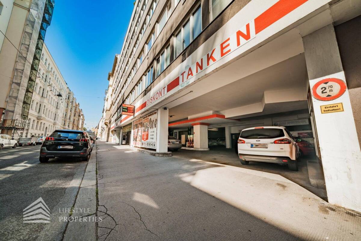 Zum Verkauf gelangt eine lukrative Tankstelle mit fünf vermietbaren Stellplätzen, einer Autowerkstatt und Lagerräumen im siebten Wiener Gemeindebezirk.Die derzeit still gelegte Tankstelle besteht aus drei Tanks die jeweils 20.000 Liter fassen können, einer Autowerkstatt, einem Shop, einer Autowaschanlage und Lagerräumen, die sich vor allem zur Einlagerung für Reifen eignen. Darüber hinaus verfügt das Objekt auch über ein Büro sowie eine Toilette. Insgesamt erstreckt sich die Nutzfläche über ca. 876 m². Die gesamte Anlage wurde in ihren technischen Einrichtungen grundlegend erneuert und verfügt über die, den aktuellen Vorschriften entsprechende, Ausstattung.Zusätzlich zu den gewerblich genutzten Räumen erwerben Sie auch einen Teil der Garage, welche sich im Untergeschoss befindet und mit einem Lift (bis zu 1500 Kilogramm) erreicht werden kann. In dieser gibt es fünf vermietbare Stellplätze, zu einer Monatsmiete von jeweils € 150,-.Die Lage der Tankstelle ist sensationell, da sie sich in dem stark frequentierten siebten Bezirk befindet und die Straße Richtung Gürtel führt. In unmittelbarer Nähe befindet sich die Mariahilfer Straße und der Westbahnhof. Für nähere Informationen zur Infrastruktur, fordern Sie bitte unser Exposé an.Überzeugen Sie sich selbst von diesem einzigartigen Objekt.Für Besichtigungen und nähere Informationen stehen wir Ihnen gerne zur Verfügung!Frau Marlies Sprinzl national - Tel: 0660 909 4554 international - Tel: +43 660 909 4554 e-mail: sprinzl@lifestyle-properties.atInfrastruktur / EntfernungenGesundheit Arzt <500m Apotheke <500m Krankenhaus <1.000m Klinik <500m Kinder & Schulen Schule <500m Kindergarten <1.000m Universität <500m Höhere Schule <1.500m Nahversorgung Supermarkt <500m Bäckerei <500m Einkaufszentrum <1.000m Sonstige Bank <500m Geldautomat <500m Post <500m Polizei <500m Verkehr Bus <500m Straßenbahn <500m U-Bahn <500m Bahnhof <500m Autobahnanschluss <5.000m Angaben Entfernung Luftlinie / Quelle: OpenStreetMap