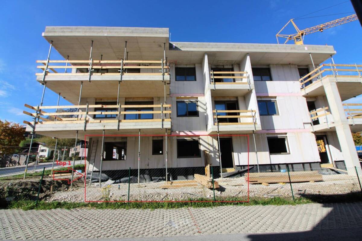 Ihr Makler vor Ort, die KR Real OG darf Ihnen ein stimmiges, neues Zuhause zum Kauf anbieten.Mehr als nur 4-Wände - Sicherheit, Eigentum und Geborgenheit! Die beliebte Marktgemeinde Gröbming, umgeben von der wunderschönen Bergwelt des steirischen Ennstales gepaart mit einer sehr guten Infrastruktur, bietet ein angenehmes Leben wo andere Urlaub machen!Hier entsteht gerade ein Wohnhaus mit nur sieben Wohneinheiten, zum Einzug bereit wird es im Frühling 2021 sein.Das Haus wird in Niedrigenergiebauweise errichtet und überzeugt mit einer sehr guten Ausstattung wie, Kunststoff-Alu Fenster, die Schlaf- und Wohnräume werden zusätzlich mit Jalousien bzw. Raffstore ausgestattet. Moderne, großformatige Fliesen und elegante Parkettböden kombiniert mit der Fußbodenheizung (hauseigene Pelletheizung) vermitteln ein angenehmes Wohngefühl!Beschreibung der Eigentumswohnung Top1:Lage: ErdgeschossRaumaufteilung:• Vorraum, davon abgehend• Abstellraum mit Waschmaschinenanschluss• Tageslichtbadezimmer mit bodengleicher Dusche• Separates WC mit Fenster• Drei Zimmer• Gemütliche Wohnküche mit Ausgang auf die ca. knapp 16m² große Terrasse und in den eigenen Garten (Fläche ca. 38m²)Jedem Wohnungseigentum ist ein Kellerabstellraum mit Strom und Steckdose zugeordnet.Ein weiterer allgemeiner Kellerraum steht zur gemeinschaftlichen Nutzung ebenfalls zur Verfügung.Für Ihr Fahrzeug ist ein Parkplatz zum zusätzlichen Preis von € 5.400.-- vorgesehen.Könnte sich Ihre Familie hier wohlfühlen?Sehr gerne beantworte ich Ihre ersten Fragen vorab per Telefon unter der Nummer 0043 664-39 112 07 Fr. Stoimaier. Eine unverbindliche Besichtigung ist jederzeit unter Voranmeldung möglich!Wir weisen auf die Tätigkeit des Doppelmaklers und auf das wirtschaftliche Naheverhältnis zum Abgeber hin. Bitte beachten Sie, dass auf Grund der Nachweispflicht gegenüber dem Verkäufer nur Anfragen unter der vollständigen Angabe von Name, Adresse und Telefonnummer beantwortet werden können.Infrastruktur / EntfernungenGesundheit Arzt <500m Apotheke <500m Kinder & Schulen Schule <500m Kindergarten <500m Nahversorgung Supermarkt <500m Bäckerei <3.000m Sonstige Bank <500m Geldautomat <500m Post <1.000m Polizei <500m Verkehr Bus <500m Bahnhof <2.000m Flughafen <9.000m Angaben Entfernung Luftlinie / Quelle: OpenStreetMap