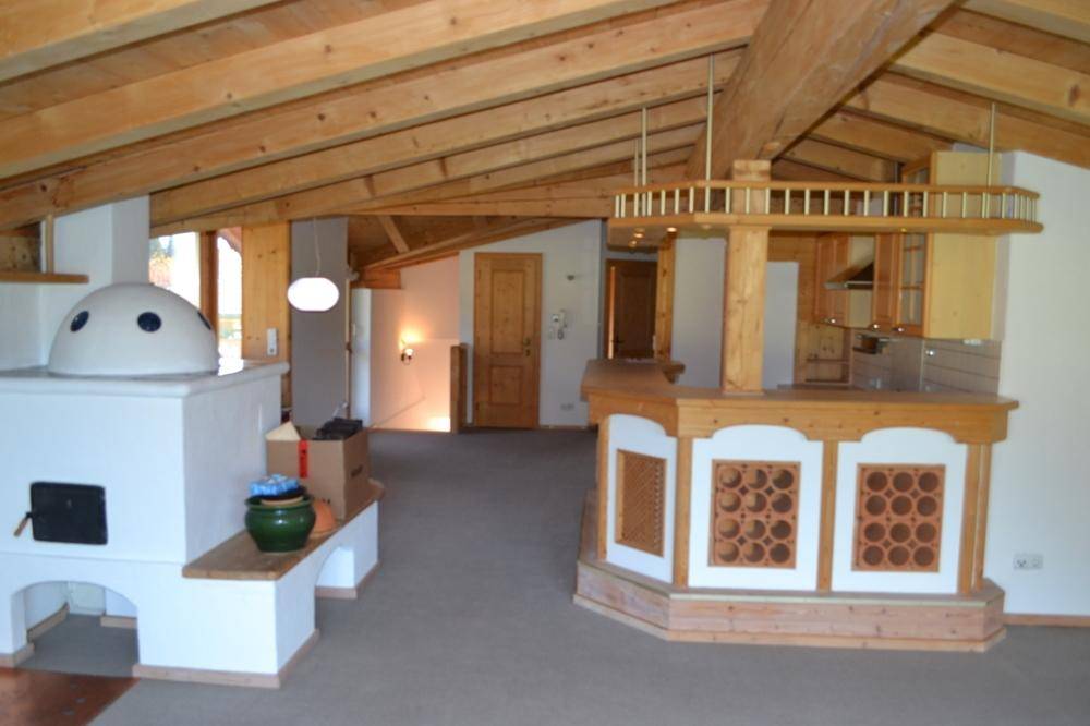 Diese Dachgeschoss-Mietwohnung ist teilweise eingerichtet und befindet sich in einem Haus mit insgesamt nur zwei Wohneinheiten. Den zweiten Teil des Hauses, bewohnt der Eigentümer des Hauses, der auch auf das Haus im Allgemeinen schaut. Ein Freiparkplatz ist für diese Wohnung reserviert und über einen eigenen Eingang, betritt man das Erdgeschoss der Wohnung, wo sich die Garderobe und ein Stauraum für Waschmaschine und Trockner befindet. Über eine Stiege gelangt man in den Dachgeschossbereich und wird vom großräumigen Ess- und Wohnzimmerbereich empfangen. Eine offene Landhausküche ist vorhanden und die gesamte Wohnung ist von einem offenen Sichtdachstuhl überzogen. Ein Kachelofen ist vorhanden und sorgt zusätzlich für eine wohlige Wärme. Das Hauptschlafzimmer verfügt über eine Schrankraum und teilt sich mit dem Kinderzimmer ein Bad mit Wanne und Dusche. Die Wohnung ist nach Westen ausgerichtet und über große Fensterfronten gelangt man auf den sonnigen Westbalkon. Da nach Westen keine Nachbarn vorhanden sind, ist hier für viel Privatsphäre gesorgt und der Blick auf das Bergmassiv des Wilden Kaiser ist gewährleistet. Wichtig ist zu erwähnen, dass im monatlichen Mietpreis die Heizkosten inkludiert sind.