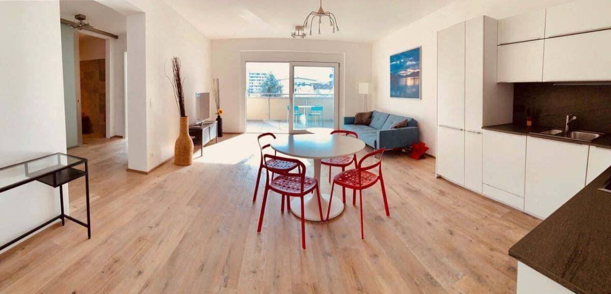 Diese elegante und modern, teilmöblierte 4-Zimmer Mietwohnung steht ab sofort zur Vermietung bereit. Exzellente Lage, inmitten der Villacher Innenstadt, ruhig mit Blick Richtung Karawanken. Diese perfekte Stadtwohnung ist aufgeteilt wie folgt: Vorraum, WC, Abstellraum mit Waschmaschinenanschluss, drei Schlafzimmer, weiterer Vorraum, barrierefreies Badezimmer mit Walk-in Dusche, ca. 33m² großer Wohn-Essbereich mit Einbauküche. Die gesamte Wohnung ist mit einem handgehobelten Natur Eichenboden ausgestattet, der für ein gemütlich, wohlig angenehmes Raumempfinden sorgt. Ein Highlight dieser Wohnung ist sicherlich auch die uneinsichtige, ca. 13m² große Loggia mit Weitblick, barrierefrei vom Wohnbereich aus zu erreichen. Premium Mietwohnung, im 3. Liftstock, mit sehr hochwertiger Ausstattung, im Herzen der Villacher Innenstadt. Ausstattung: DAN Markenküche Badezimmer offen und barrierefrei gestaltet Kellerabteil ca. 4m² 1 x TG—Parkplatz inkludiert 1 x TG—Parkplatz optional zu mieten € 50,--/mtl. Es wurden edelste Materialien für Böden, Türen und Fliesen verwendet.