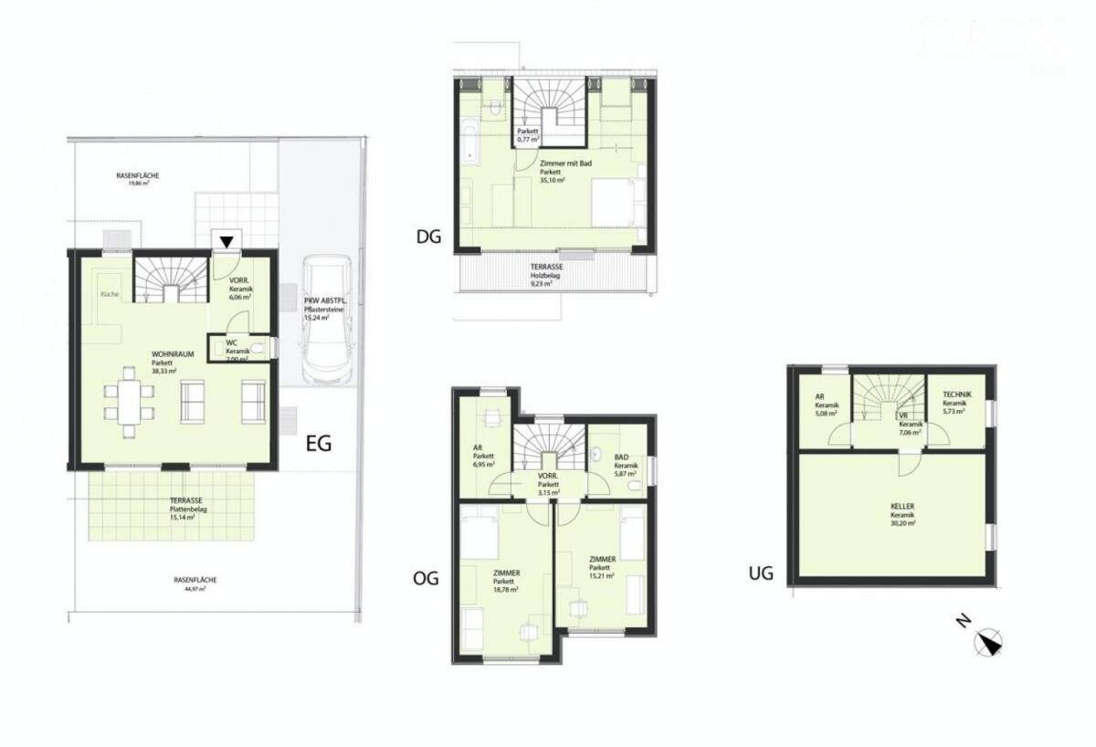 In einer ruhigen und grünen Lage des 22. Wiener Gemeindebezirks zwischen dem Mühlwasser, dem Biberhaufenweg und dem oberen Mühlwasser werden aktuell vier exklusive Doppelhaushälften (2 Gebäudekörper) errichtet.Alle Doppelhaushälften verteilen sich auf 3. Geschosse sowie ein Kellergeschoss und verfügen über ca. 131 m2 Wohnfläche und ca. 48 m2 Kellerfläche. Außerdem sind die Häuser mit Gärten, einer Terrasse in der Wohnebene im Erdgeschoss und einer Terrasse im Dachgeschoss ausgestattet. Jede Doppelhaushälfte steht ein Stellplatz (gegen Aufpreis) direkt neben der entsprechenden Einheit zur Verfügung. Die Häuser werden belagsfertig übergeben. Auf Wunsch können diese auch schlüsselfertig (Aufpreis) ausgeführt werden. Durch die gut durchdachten Grundrisse, die lichtdurchfluteten Räumen, den eigenen Garten und mehreren Freiflächen, erfüllt dieses Projekt die Anforderungen für den idealen Wohntraum!Austattungshighlights:Luftwärmepumpe: Fußbodenheizung in allen Räumlichkeiten (Mit Raumthermostat steuerbar) 3-Fach isolierverglaste Alu- Kunststofffenster + elektrischen außenliegenden Rollläden Sonnen- und Insektenschutz ZiegelmassivVollunterkellertEichenparkett- und Keramischer Fliesenbelag aus Feinsteinzeug Velux Dachflächenfenster Sicherheitstüre WK3Vorinstallation für Klimaanlagen Gliederung:Diese Einheit verfügt über ca. 131m2 Wohnfläche, ca. 24m2 Terrassen- und ca. 64m2 Gartenfläche. KG:Kellerraum VorraumAbstellraumTechnik und Abstellraum EG: Vorraum Wohnbereich separate Toilette Zugang zur Terrasse + Garten1. OG:VorraumAbstellraum Badezimmer mit Dusche + Toilette 1. Schlafzimmer2. Schlafzimmer2. OG:3 Schlafzimmer Badezimmer mit Badewanne + Doppelhandwaschbecken und Toilette Zugang zur 2. Terrasse Die Fertigstellung der Einheiten ist mit Mai 2021 geplant. Der Kaufpreis für die Schlüsselfertige Variante beträgt € 640.000,- Ein KFZ Abstellplatz ist für € 15.000 zu erwerben (verpflichtend)!Verkehrsanbindung:Buslinien: 95A, 93A (15 Minuten zur "U2") Auto: A22, A23 Sonstiges:Alle Angaben sind ohne Gewähr und basieren ausschließlich auf Informationen, die uns von unserem Auftraggeber zur Verfügung gestellt wurden. Wir übernehmen keine Gewähr für die Vollständigkeit, Richtigkeit und Aktualität dieser Angaben. Wir weisen Sie darauf hin, dass wir kraft bestehenden Geschäftsgebrauchs als Doppelmakler tätig sind. Auf ein wirtschaftliches Naheverhältnis mit dem Abgeber/Verkäufer wird hingewiesen. Die Vermittlungsprovision beträgt 3% des Kaufpreises zzgl. 20 % Ust.Infrastruktur / EntfernungenGesundheit Arzt <1.500m Apotheke <2.000m Klinik <6.000m Krankenhaus <2.000m Kinder & Schulen Schule <2.000m Kindergarten <1.500m Universität <2.500m Höhere Schule <5.500m Nahversorgung Supermarkt <500m Bäckerei <2.000m Einkaufszentrum <3.500m Sonstige Bank <2.000m Geldautomat <2.500m Post <2.500m Polizei <2.000m Verkehr Bus <500m U-Bahn <2.000m Straßenbahn <2.000m Bahnhof <2.000m Autobahnanschluss <2.000m Angaben Entfernung Luftlinie / Quelle: OpenStreetMap