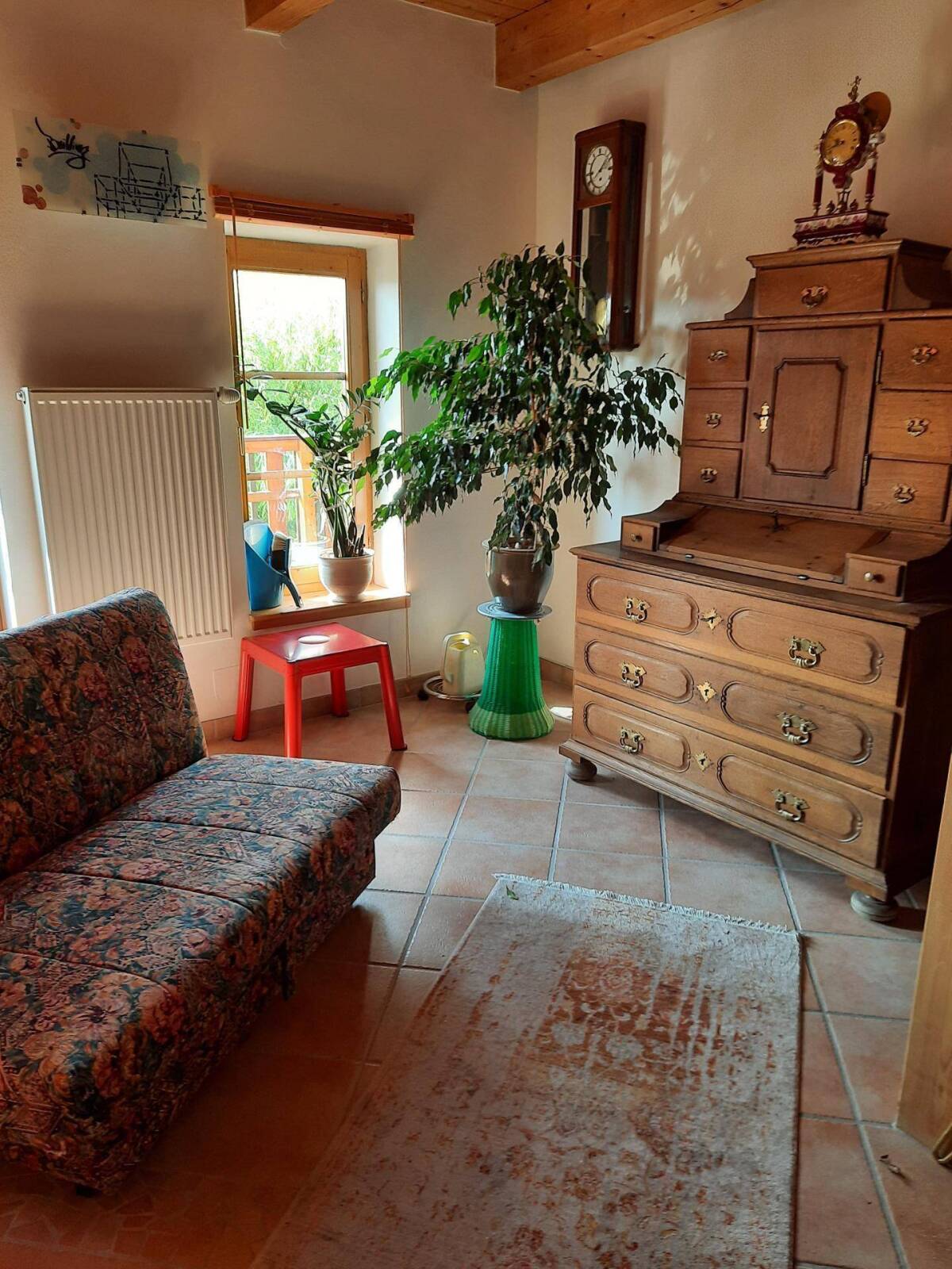 Kleine Maisonettenwohnung in eigenem Haus auf Kurzzeitwohnen oder befristet auf 3 Jahre zu vermieten. Durch das Vorzimmer erreicht man das WC mit Dusche und das großzügige Wohn-, Esszimmer mit Küchenzeile, ein kleiner Raum (Vorratsraum) ist vom Wohnbereich aus begehbar. Das Schlafzimmer ist über eine Treppe (Maisonette) erreichbar. Ein großer Balkon mit Blick ins Grüne ist ebenfalls vorhanden. Parkplatz vor dem Haus. Das Haus ist voll eingerichtet. Will man es besonders gemütlich haben, dann kann man den vorhandenen Holzofen beheizen. D. h. Koffer packen und einziehen. Bei Miete auf Kurzzeit beträgt die Wochenmiete Euro 300,-- Bei befristeter Miete auf 3 Jahre beträgt die Monatsmiete Euro 850,-- zuzüglich einer Kaution von Euro 1.700,--.