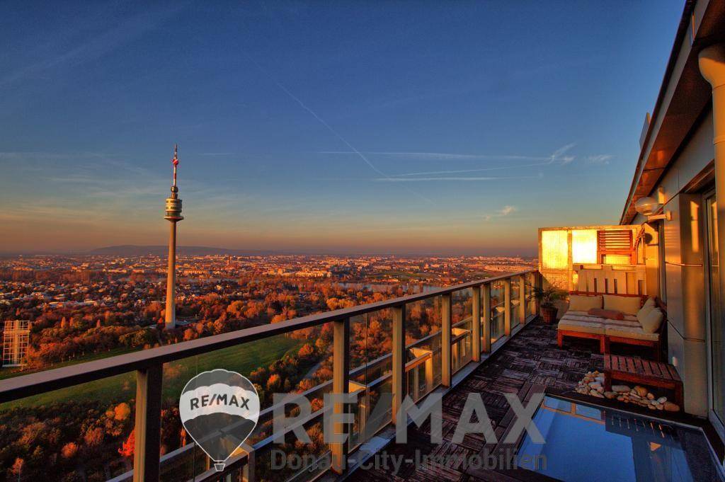 "Der vielleicht schönste Blick auf Wien..." Im 34. und somit letzten Liftstock des Mischek Towers liegt dieses traumhaft schöne 2-Zimmer-Apartment mit seiner großen Terrasse mit kleinem Pool. Die 61m² sind optimal angelegt, es gibt ein gemütliches Schlafzimmer, ein modernes Wohnzimmer mit räumlich abgegrenzter Küche und natürlich ein Badezimmer mit WC. Die eingebaute Klimaanlage sorgt für angenehme Temperaturen auch im Sommer. Der herrliche Ausblick aus allen Räumen wird Sie begeistern...bei Tag und noch mehr bei Nacht. So haben Sie Wien wahrscheinlich noch nie gesehen. Durch die optimale Lage in unmittelbarer Nähe zu Donauinsel, Donaupark und zur Alten Donau bieten sich hier zahlreiche Möglichkeiten die Freizeit aktiv in der Natur zu gestalten, und das mitten in der Stadt. Durch die Donauuferautobahn und die nahe U1 Station Kaisermühlern VIC ist auch die Anbindung an das öffentliche Verkehrsnetz ausgezeichnet. Dieses Apartment eignet sich perfekt für anspruchsvolle Eigennutzer als auch für Anleger, denn das nahe Konferenzzentrum und die UNO City sorgen jährlich für tausende Besucher aus dem In- und Ausland. Der Mischek Tower wurde im Jahr 2000 gebaut und war für lange Zeit das höchste Wohnhaus Österreich. Das Gebäude ist in einem ausgezeichneten Zustand, es sind keine größeren Renovierungen notwendig oder geplant. Die Nutzungsrechte für 2 Garagenplätze und ein Kellerabteil können optional dazu erworben werden. Wir ersuchen um Verständnis dass nur Anfragen mit vollständigen Kontaktdaten bearbeitet werden können. Kaufpreis: € 550.000,--Angaben gemäß gesetzlichem Erfordernis: Heizwärmebedarf: 40.0 kWh/(m²a) Klasse Heizwärmebedarf: B Faktor Gesamtenergieeffizienz: 1.09 Klasse Faktor Gesamtenergieeffizienz: B Durchschnittliche Vermarktungszeit: 80 Tage Erzielter Preis 97% vom Angebotspreis! Testen Sie uns! Wir erweitern unser Team! Bewerben Sie sich jetzt! Ihre-Karriere-als-Immobilienprofi bei RE/MAX Donau-City-Immobilien!