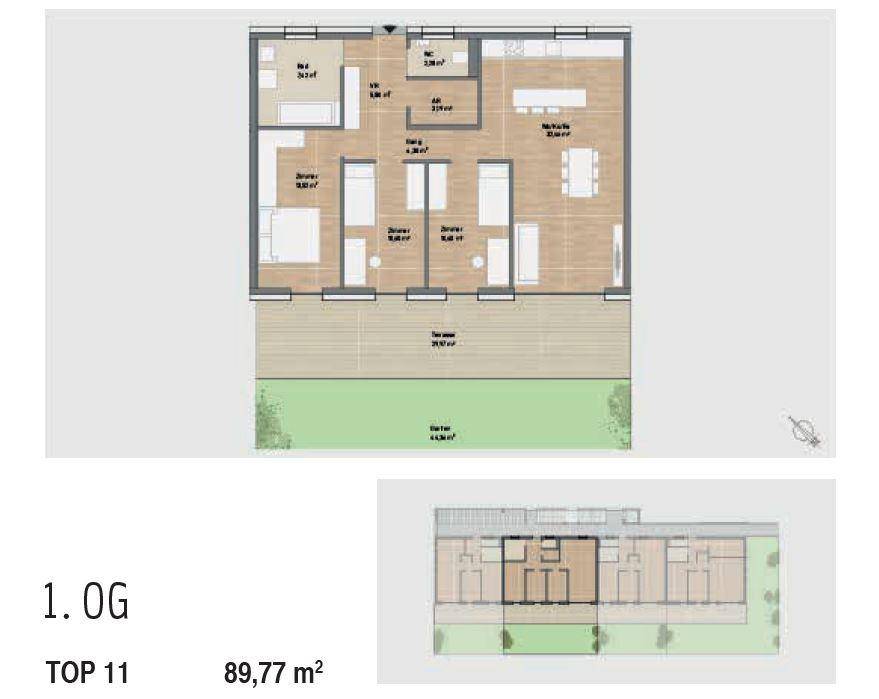 In der beliebten Wohngegend Graz - St. Peter entstehen diese 3 wunderschönen Wohngebäude mit insgesamt 31 ideal eingeteilten Eigentumswohnungen. Dieses Neubauprojekt entsteht in einer der beliebtesten Wohngegenden in Graz, da eine perfekte städtische Infrastruktur gegeben ist. Durch die optimale Verkehrsanbindung ist die Innenstadt in nur wenigen Minuten erreichbar. Auch sämtliche Universitäten und Fachhochschulen erreichen Sie in kürzester Zeit. Verschiedene Einkaufsmöglichkeiten, Schulen, Kinderbetreuungsmöglichkeiten, Cafés etc. befinden sich in unmittelbarer Nähe und auch diverse Parks und Naherholungsgebiete sind in nur kurzer Zeit erreichbar. Es stehen Ihnen Wohneinheiten zwischen ca. 43m² und 101m² zur Verfügung und jede Wohnung verfügt entweder über einen sonnigen Balkon oder eine herrliche Terrasse. Den Erdgeschosswohnungen ist außerdem ein traumhafter Garten zugeteilt. Raumaufteilung des hier angebotenen ca. 90 m² großen Erdgeschosswohnung:VorraumAbstellraumseparates WCBadezimmer3 Schlafzimmergroßzügiger Wohn- Essbereich mit KücheTerrasse + Garten Das in Massivbauweise errichtete Neubauprojekt werden mit glatten, weißen Holzinnentüren und Fenstern aus Kunststoff mit 3-fach-Verglasung ausgestattet. Fenster und Fenstertüren von Aufenthaltsräumen (Ausnahme Oberlichten) erhalten einen außen liegenden Sonnenschutz mit Kurbelbedienung/-antrieb. Beheizt werden die Wohnungen mittels Fernwärme über eine Fußbodenheizung und zusätzlich wird in jedem Badezimmer ein elektrischer Sprossenheizkörper situiert. Als Bodenbelag dienen hochwertiger Parkett und Fliesen/Feinsteinzeug. Bei Bedarf kann ein Tiefgaragenparkplatz gegen einen Aufpreis erworben werden. Die Penthousewohnungen erhalten eine abweichende Ausstattung. Details auf Anfrage. Der Baubeginn erfolgt voraussichtlich im Herbst 2020 und die Fertigstellung ist im Sommer 2022 geplant. Anlegerpreis: 373.623 € Fazit: Hochwertige Neubauwohnungen in perfekter Grazer Stadtlage!