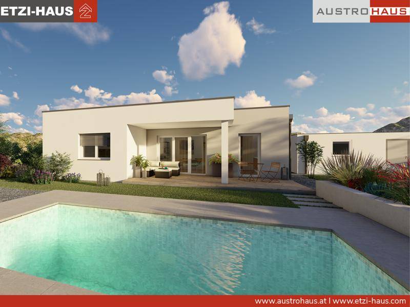 Moderner Bungalow mit traumhaftem Grundstück in Pinsdorf ab € 385.197,- Pinsdorf ist eine wunderschöne, ländliche Gemeinde umgeben von Wiesen, Feldern und Wäldern. Die zentrale Lage von Pinsdorf zwischen Gmunden und Vöcklabruck macht den Ort zu einem attraktiven Zuhause. Die Nähe zum Traunsee sowie zu den Wandergebieten "Totes Gebirge" und "Höllengebirge" – bieten eine Vielzahl an diversen Freizeitangeboten. Der Stadtkern Gmunden ist in wenigen Fahrminuten (3,4 km) erreichbar. Schulen, Kindergarten, Nahversorger und das Einkaufszentrum SEP befinden sich in naher Umgebung. INFORMATION GRUNDSTÜCK Die Grundstücke werden von uns voll aufgeschlossen übergeben und beinhalten die Wasserversorgung, Strom, Abwasserbeseitigung und Verkehrserschließung. FAKTEN - 12 Grundstücke für Doppel- und Einfamilienhäuser - Grundstücksgrößen: 432 bis 573 m² - Traumhafte Naturlage - Traunsteinblick - Vielfältige Freizeitangebote - Gute Infrastruktur BEBAUUNGSVORSCHLAG - TYPENHAUS LINZ 91 Das Typenhaus Linz 91 lässt für Jemanden, der einen trendigen Bungalow mit wenigen Quadratmetern sucht, keine Wünsche offen. Neben den zwei Schlafzimmern bietet das Haus einen lichtdurchfluteten Wohn-Ess-Koch-Bereich. Der Wohnbereich ist vom Ess- und Kochbereich optisch abgetrennt. PREISINFORMATION TYPENHAUS LINZ 91 TYPENHAUS BELAGSFERTIG INKLUSIVE GRUNDSTÜCK AB € 385.197,- - Wohnfläche 91 m² - Mit Flachdach - Grundstück 526 m² - Inkl. Nebenkosten (Grunderwerbsteuer etc.) TOP AUSSTATTUNG - Wir bauen auf österreichische Produkte - Ziegelmassivbauweise - Mit Flachdach - Außenwände mit 25 cm Ziegel + 20 cm VWS - INTERNORM Kunststoff-Alu-Fenster KF310 mit 3-fach Verglasung - Luftwärmepumpe inkl. Wärmeverteilung und Fußbodenheizung - Alu-Rollläden - 3 m² Eingangspodest - 30 m² Terrasse - Betriebsfertige Elektroinstallation inkl. Hausverteiler - Hochwertige sanitäre Rohinstallation - Inkl. Erdarbeiten und Kanalpaket DAS ZIEGELMASSIVHAUS ZUM PREIS EINES FERTIGHAUSES AUSTROHAUS und ETZI-HAUS sind Ihre professionellen Partner beim Hausbau. Die in bewährter Ziegelmassivbauweise errichteten Niedrigenergiehäuser werden dank des eingespielten und erfahrenen Teams innerhalb kürzester Zeit zum Fixpreis hergestellt. HWB und fGEE je nach Ausstattung und Kundenwunsch. WISSEN SCHAFFT SICHERHEIT - DIE BAUINFOTAGE Informieren Sie sich bei unseren kostenlosen Bauinfotagen über alles, was Sie über das Projekt "Hausbau" wissen müssen. Termine und Anmeldung finden Sie unter www.austrohaus.at oder www.etzi-haus.com Für weitere Fragen zum Projekt steht Ihnen gerne unser Berater zur Verfügung. IHR ANSPRECHPARTNER Heinz Pramhas Verkauf - Beratung Tel.: 0650/8961010 E-Mail: h.pramhas@etzi-haus.com Mit einer Anfrage sind Sie damit einverstanden, dass Ihre personenbezogenen Daten in der Etzenberger Holding GmbH (AUSTROHAUS, ETZI-HAUS) gespeichert, verarbeitet und benutzt werden um mit Ihnen in Kontakt zu treten. Die angegebenen Daten werden vertraulich behandelt. Alle Angaben ohne Gewähr. Druckfehler und Preisänderungen vorbehalten.