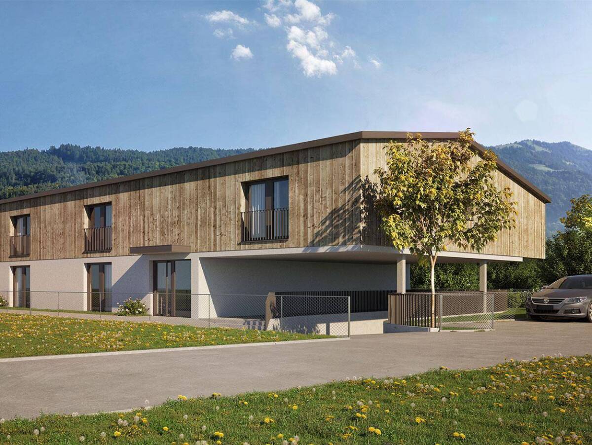 Unsere Anlage besteht aus zwei, zueinanderstehenden Baukörpern mit Satteldächern, die sich parallel in das rechteckige Grundstück einfügen. Die großzügigen,lichtdurchfluteten 3- und 4-Zimmerwohnungen sind südöstlich ausgerichtet. Alle Terrassen sind in die Gebäudehülle integriert. So entstehen freundliche Privatbereiche mit grünen Ausblicken in die herrliche Landschaft des Bregenzerwaldes. Der Zugang erfolgt von Westen und erreicht drei ebenerdige Hauseingänge.