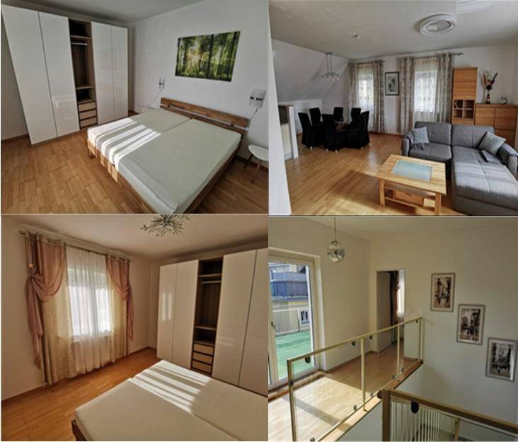 95 m² Wohnung (1. Stock) mit 36 m² großer Dachterrasse, 3 Zimmer, Dan-Küche, Parkettboden, Bad mit Dusche und Wanne, Heizung zentrale Gastherme, SAT-Anlage, Gartenbenützung, Garagenabstellplatz optional. zentrale und ruhige Sackgassenlage: 2 Gehminuten zum Hauptplatz, 7 Gehminuten Bahnhof, sofort beziehbar; Nettomiete 583,00 EUR Betriebskosten + Inventar 242,60 EUR Heizkosten 74,40 EUR Gesamtmiete: 900 Euro warm inklusive Betriebskosten; exkl. Strom Kaution 4 Monatsmieten, keine Provision keine Haustiere Telefon: 0664 570 5649 (abends für Besichtigung am Wochenende) fGEE=0.94(B) HWBSK=59,56