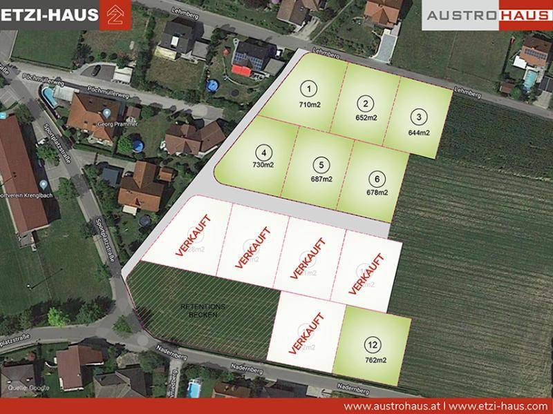 JETZT Grundstück mit modernem Ziegelmassivhaus in Krenglbach ab € 369.747,- sichern! In ruhiger Siedlungslage in Krenglbach entstehen 12 Grundstücke Durch die Nähe zu Wels – in 10 km Entfernung – entwickelt sich die Gemeinde Krenglbach, von einer Landgemeinde mit landwirtschaftlicher Struktur, zu einer Stadtrand- und Pendlergemeinde. Eine lebendige Ortskultur und eine ebenso lebendige Lokalpolitik, ein aktives Vereinsleben, eine gewisse Gemütlichkeit und das Zusammenhalten der Bevölkerung kennzeichnen das Leben in Krenglbach. Die bestehende Infrastruktur wie Volksschule, Kindergarten, Einkaufsmöglichkeiten, ärztliche Versorgung runden das Gesamtkonzept von Krenglbach ab und machen die Gemeinde für junge Familien äußerst attraktiv. Die Grundstücke werden von uns voll aufgeschlossen übergeben und beinhalten die Wasserversorgung, Strom, Abwasserbeseitigung und Verkehrserschließung. FAKTEN GRUNDSTÜCKSPREIS: € 196,- / m² - 12 Grundstücke für Einfamilienhäuser - Grundstücksgrößen: 644 m² - 772 m² - BAUSTART: Frühjahr 2021 - Traumhafte Lage - Vielfältige Freizeitangebote - Gute Infrastruktur - Autobahnanschluss Wels Nord A25 ( ca. 6,3 km) - Autobahnanschluss Pichl bei Wels A8 ( ca. 5,2 km) BEBAUUNGSVORSCHLAG TYPENHAUS GRAZ 128 Wenn Sie auf der Suche nach einem modernen und schlichten Ziegelmassivhaus sind, dann haben wir genau das richtige für Sie im Angebot. Das Typenhaus Graz 128 hat im Erdgeschoß (61,41 m²) eine geräumige Diele, ein Gäste-WC und einen offenen Wohn-Ess-Koch-Bereich der zu gemütlichen Feiern mit Freunden einlädt. Neben dem offen gestalteten Wohnbereich gibt es auch noch eine überdachte Terrasse, die im Sommer Schatten spendet. Im Obergeschoss (66,59 m²) befindet sich ein Elternschlafzimmer sowie zwei Kinderzimmer. PREIS TYPENHAUS UND GRUNDSTÜCK Ziegelmassivhaus ab € 235.095,- (belagsfertig mit Flachdach) inkl. Bodenplatte und Fundamente Grundstücksgröße: 687 m² (Grundstück Nr. 5) Preis pro m²: € 196,- AUSSTATTUNG ZIEGELHAUS - Wir bauen auf österreichische Produkte - Ausführung in Ziegelmassivbauweise - Belagsfertig mit Topausstattung errichtet - Luftwärmepumpe inkl. Fußbodenheizung - Rollläden - 20m² Rohbetonterrasse und Eingangspodest - Elektroinstallation inkl. Schalter und Sicherungsverteiler - Sanitärrohinstallation - Internorm Kunststoff-Fenster KF410 - Bodenplatte inkl. Fundamente - Baukoordinator Optional: - Keller - Terrassenüberdachung - Erdarbeiten DAS ZIEGELMASSIVHAUS ZUM PREIS EINES FERTIGHAUSES AUSTROHAUS und ETZI-HAUS sind Ihre professionellen Partner beim Hausbau. Die in bewährter Ziegelmassivbauweise errichteten Niedrigenergiehäuser werden dank des eingespielten und erfahrenen Teams innerhalb kürzester Zeit zum Fixpreis hergestellt. HWB und fGEE je nach Ausstattung und Kundenwunsch. WISSEN SCHAFFT SICHERHEIT - DIE BAUINFOTAGE Informieren Sie sich bei unseren kostenlosen Bauinfotagen über alles, was Sie über das Projekt "Hausbau" wissen müssen. Termine und Anmeldung finden Sie unter www.austrohaus.at oder www.etzi-haus.com Für weitere Fragen zum Projekt steht Ihnen gerne unser Berater zur Verfügung. IHR ANSPRECHPARTNER Siegfried Mosser Projektentwicklung – Verkauf 0650 / 89 61 011 s.mosser@etzi-haus.com Mit einer Anfrage sind Sie damit einverstanden, dass Ihre personenbezogenen Daten in der Etzenberger Holding GmbH (AUSTROHAUS, ETZI-HAUS) gespeichert, verarbeitet und benutzt werden um mit Ihnen in Kontakt zu treten. Die angegebenen Daten werden vertraulich behandelt. Alle Angaben ohne Gewähr. Druckfehler und Preisänderungen vorbehalten.