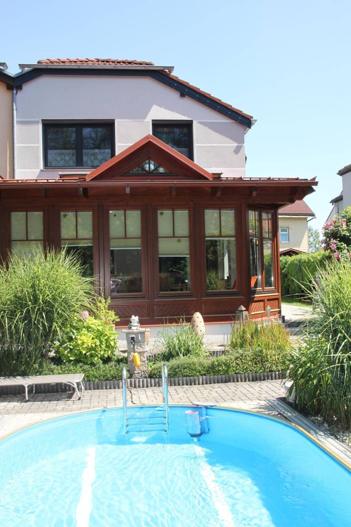 Gepflegte Doppelhaushälfte mit Kachelofen, Wintergarten und Pool