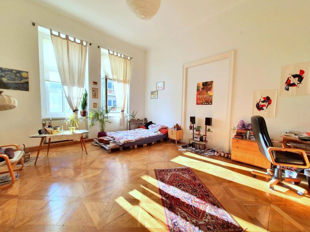 Großzügige Altbauwohnung in sehr zentraler, ruhiger Einbahngasse; wenige Gehminuten zum Opernhaus mit Kaiser-Josef-Markt; 4 Radminuten zur TU, 9 Radminuten zur KF-Universität; 28 m² Wohnbereich + 4 einzeln begehbare Schlafzimmer; bei Bedarf ideale Eignung für 4er-WG; Essküche mit Geschirrspüler, Ceranfeld-Herd, Kühl- Gefrierkombination, Mikrowelle und Waschmaschinen-Anschluss ausgestattet; Badezimmer mit Dusche und Fenster; Toilette mit Gästewaschbecken vom Bad getrennt; tolle Raumhöhe; hohe Fenster; weiße Flügeltüren; Massivparkettböden (teilweise wunderschöne Sternparketten); gute Infrastruktur und Straßenbahn-Anbindung; Innenhofbalkon; Allgemeingarten im Innenhof; Fahrrad-Abstellplatz; Kellerabteil; Miete € 1.290,- inklusive Betriebskosten, exklusive Heizung; Kaution € 3.870,-; Provision € 3.096,- inkl. 20% Ust.Angaben gemäß gesetzlichem Erfordernis: Miete € 1290 Umsatzsteuer € 0 ------------------------------------------------------------------ Gesamtbetrag € 1290