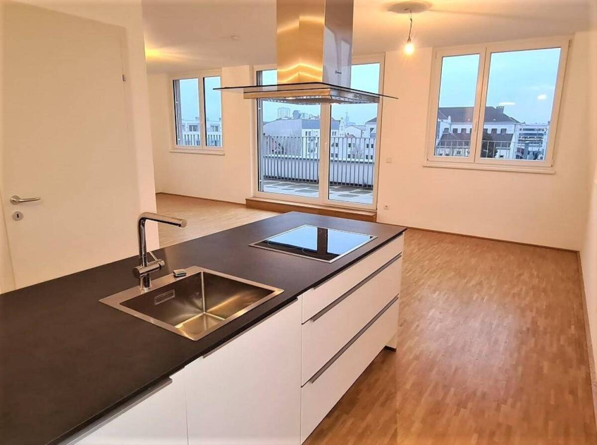 DACHGESCHOSS! Klimatisierte 89 m2 Neubau mit 50 m2 Terrasse, 2 Zimmer, Wohnküche, Wannenbad, Maximilianstraße