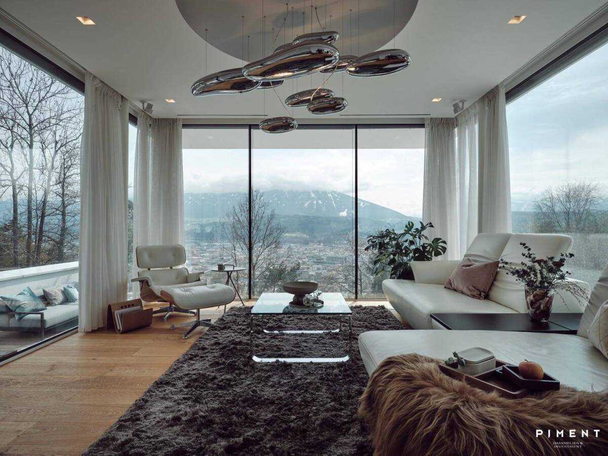 Das technisch auf allerhöchstem Niveau ausgestattete Anwesen verfügt insgesamt über acht Schlafzimmer, sieben Bäder und im Untergeschoß über einen sehr geschmackvollen Wellness-Bereich mit einem großzügigen Indoorpool, einer sehr schönen Sauna inkl. Ruheraum mit offenem Kamin und einem Fitness-Raum mit Atrium-Charakter. Die Garage bietet Platz für mehrere Autos. Mit dem Lift sind beide Gebäudeteile erreichbar. Alle Räume sind sehr geschmackvoll und mit hochwertigen Design-Objekten ausgestattet. Besonders hervorzuheben ist der Wohnsalon mit eine Größe von 90m2 und einem übergroßen Glasfenster, welches geöffnet – einen zusätzlichen geschützten Freiraum bietet. Der wunderschöne Kamin verbreitet an kalten Wintertagen behagliche Wärme. Beide Küchen sind hochwertig mit state of the art-Geräten ausgestattet. Der östliche Bereich des Hauses verfügt über mehrere Terrassen auf allen Wohnebenen, die allesamt einen fantastischen Blick auf Innsbruck und den gegenüberliegenden Berg Isel, sowie die Patscherkofel-Berggruppe bieten. Diverse Technik-Räume und ein Panic-Room vervollständigen dieses prachtvolle Anwesen.Ausstattung:// Fußbodenheizung // Kompaktlüftungsanlage mit Wärmerückgewinnung // Videoüberwachung im Außenbereich // Schließanlage mit Fingerprint // Alarmanlage // Zentralstaubsauger // Panic-Room // Kühldecken (teilweise) // BUS-System inkl. MusiksteuerungIrrtümer und Änderungen vorbehaltenInfrastruktur / EntfernungenGesundheit Arzt <500m Apotheke <500m Krankenhaus <1.500m Klinik <4.000m Kinder & Schulen Schule <500m Kindergarten <500m Universität <500m Höhere Schule <1.500m Nahversorgung Supermarkt <500m Bäckerei <500m Einkaufszentrum <500m Sonstige Bank <500m Geldautomat <500m Post <500m Polizei <500m Verkehr Bus <500m Straßenbahn <500m Bahnhof <1.000m Autobahnanschluss <2.000m Flughafen <4.500m Angaben Entfernung Luftlinie / Quelle: OpenStreetMap