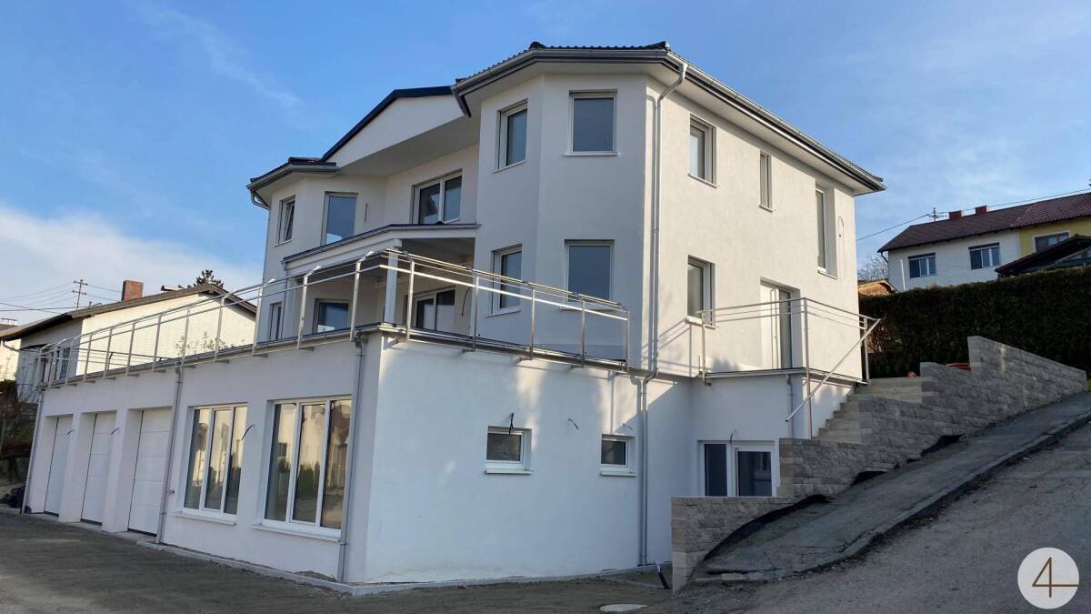 Eine wunderschöne, neu erbaute Villa erstrahlt seit Kurzem im familienfreundlichen, ruhigen Alkoven und könnte bald Ihr neues Wohn- und Arbeitsdomizil sein.Wohnen & Arbeiten unter einem Dach oder einfach das Leben leben auf über 400 m2 Nutzfläche.Die moderne Immobilie befindet sich auf einer Anhöhe und sticht dadurch gleich ins Auge. Das Objekt besteht aus drei Etagen. Im Keller befinden sich die Bürofläche sowie 3 Garagen. Im Erdgeschoss liegt der großzügige Wohnbereich und im Obergeschoss u.a. eine Einlegerwohnung.Zusätzliche Informationen:Einfahrt fertiggestelltGaragentore eingebautJOSKO-Fenster90 m2 Terasse mit WPC-Dielen verlegtEdelstahlgeländer mit GlasAußengestaltung fertiggestellt (Außenstiege ist noch zu verfliesen)Die Villa wird belagsfertig übergeben, kann aber auch schlüsselfertig übergeben werden. Sofern Interesse daran besteht, bitte Anfrage stellen bezüglich Kosten.Diverse Einkaufsmöglichkeiten, Ärzte, Schulen, Kindergärten, Apotheke befinden sich in unmittelbarer Nähe.