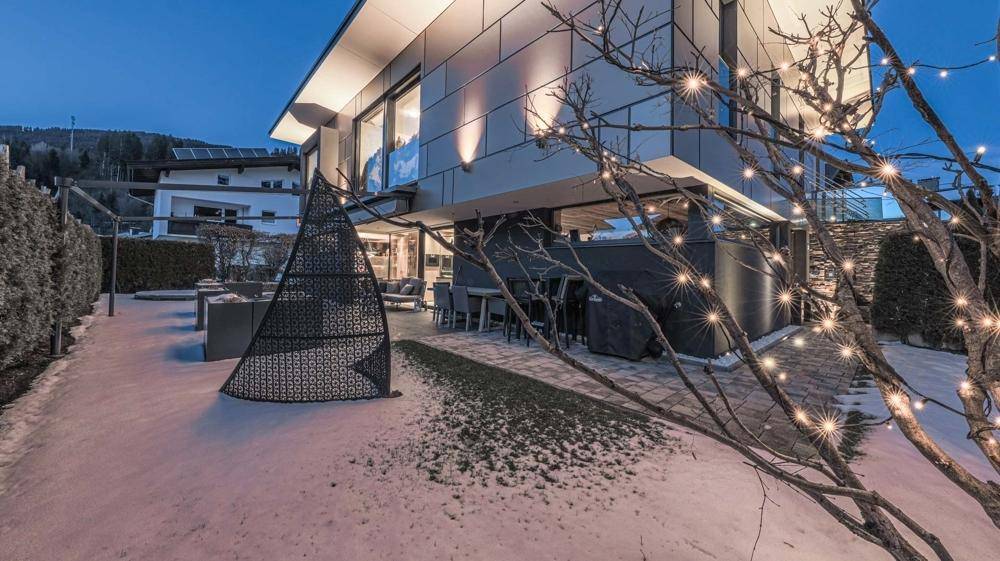 In absolut zentraler Ruhelage des Ortes befindet sich das großzügige Haus mit Top-Ausstattung, bester Infrastruktur und herrlichem Ausblick auf die umliegende Bergwelt. Aufgeteilt in 3 Etagen stehen ca. 325 m² Wohnnutzfläche sowie eine geräumige Doppelgarage und 3 Freistellplätze zur Verfügung. Über einen repräsentativen Eingangsbereich gelangt man in die offene Diele mit freischwebender Stiege in das Obergeschoss sowie Garderobe und Gäste-Toilette. Im Erdgeschoss befindet sich der gemütliche Wohnbereich, eine offene Bulthaup-Küche mit hochwertigsten Gaggenau/Miele Geräten, einer Bar sowie einer Speis. Im Anschluss an die Küche befindet sich der Essbereich mit Platz für bis zu 8 Personen und schönem Blick durch eine große Glasfront in den Garten. Vom Wohnzimmer gelangt man auf die nach Westen ausgerichtete Terrasse, welche mittels Sonnensegel komplett überdacht werden kann. Weiters ist hier ein Schlafzimmer mit Badezimmer en suite und ein Hauswirtschaftsraum situiert. Im ersten Obergeschoss befinden sich 2 weitere Schlafzimmer mit Badezimmern en suite. Sämtliche Räume sind über die Panorama-Galerie mit Sky-Window erreichbar, welche sich perfekt als Bibliothek oder sonstiges eignet. Den Masterbedroom betritt man über eine eigene komfortable Ankleide. Das große Masterbad ist zugleich Wellnessbereich und verfügt über Sauna/Infrarot, Badewanne, Dusche, WC und Doppelwaschtisch und anschließenden Ruheraum mit wunderschönem Ausblick. Von den Schlafzimmern gelangt man auf eine großzügige süd-ost ausgerichtete Balkon/Terrasse. Im Untergeschoss des Hauses befindet sich ein großer Abstellraum sowie ein Kellerraum. Designer Interieur und Beleuchtung sowie Vollholzmöblierung in Altholz und Eiche verleihen der 2012 erbauten Immobilie einen einzigartigen Charme und Wohlfühlcharakter. Der Kaufpreis versteht sich exklusive der losen Einrichtung, welche aber nach Absprache und gegen eine Ablöse übernommen werden kann. Geheizt wird mittels Erdwärme-Fußboden-Heizung mit Grundwasser-Wärmepumpe und Free Cooling. Der Kaufpreis liegt unter der Expertenschätzung und ist für Kirchberger Verhältnisse absolut gerechtfertigt. Ein 2020 erstelltes Schätzgutachten bescheinigt einen höheren Preis. Alles in allem ein wunderschönes, modernes Haus mit dennoch typischen Tiroler Elementen in einer der begehrtesten zentralen Wohnlagen von Kirchberg. Verfügbar ab ca. Mai 2021. Energiedaten: HWB 58 Klasse C, fGEE 0,94 Klasse B, gültig bis 06.12.2030.