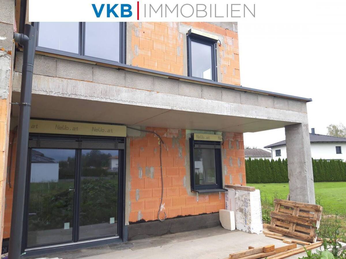 Die schöne Doppelhaushälfte mit ca. 93m² WFL wurde in Niedrig-Energiebauweise errichtet und bietet genügend Platz für eine Familie.Der Kaufpreis beinhaltet Fertigstellung (incl. Fassade und Terrasse) und schlüsselfertige Übergabe.Im Erdgeschoß finden Sie eine große Wohnküche mit Terrassenausgang vor. Es gibt sowohl im EG als auch im OG im Bad ein WC.Die Böden sind mit hochwertigen Fliesen und Eichenparkettböden vom Fachmann verlegt worden.Eine neue Tischlerküche ist bereits vorhanden.Gegensprechanlage im EG und OG, beheizt wird mit Wärmepumpe, Fußbodenheizung, zentral. Es sind auch Leerverrohrungen für Fotovoltaik vorgesehen.Der Außenbereich mit Terrasse und Garten, kann vom Käufer individuell gestaltet werden. (Verlegung der Terrassenplatten im Preis inkludiert).Es sind 2 Autoabstellplätze unmittelbar vor dem Eingangsbereich vorhanden.Das Haus wird schlüsselfertig übergeben. Der Vollwärmeschutz (20 cm) sowie der Fassadenanstrich werden noch durchgeführt und sind ebenfalls im Kaufpreis enthalten.Die Doppelhaushälfte ist nach geringen noch durchzuführenden Fertigstellungsarbeiten im Innenbereich kurzfristig beziehbar!Energieausweis: HWB 36 kWh/m²a, fGEE 0,61Kaufpreis: Euro 315.000,-Käuferprovision: 3% vom Kaufpreis zzgl. 20 % USt.BESICHTIGUNG: Jederzeit nach Terminvereinbarung mit Herrn Hermann Langanger unter der Telefonnummer 0676-83 667 782.DETAILUNTERLAGEN: Bei Interesse übermitteln wir Ihnen gerne die Pläne und Detailinformationen der Liegenschaft bzw. laden wir Sie jederzeit gerne zu einer Besichtigung ein. Bitte haben Sie Verständnis, dass wir aufgrund der Nachweispflicht gegenüber dem Eigentümer nur Anfragen mit vollständigen Kontaktdaten beantworten können. Informationsmaterial und Terminvereinbarung bei Herrn Hermann Langanger unter der Telefonnummer 0676 83 667 782.Unverbindliche Unterlage. Die angegebenen Informationen sind nach bestem Wissen erstellt, Druck- bzw. Redaktionsfehler oder Irrtümer vorbehalten. Für Angaben, Auskünfte und Flächen, die uns von Eigentümerseite bzw. Dritten zur Verfügung gestellt wurden, können wir keine Haftung übernehmen. Gem. § 5, Abs. 3 Maklergesetz weisen wir darauf hin, dass die Firma VKB-Immobilien GmbH als Doppelmakler tätig istInfrastruktur / EntfernungenGesundheit Arzt <3.500m Apotheke <6.000m Krankenhaus <7.000m Kinder & Schulen Schule <4.000m Kindergarten <3.000m Höhere Schule <7.500m Nahversorgung Supermarkt <2.000m Bäckerei <4.000m Einkaufszentrum <7.000m Sonstige Bank <4.000m Geldautomat <4.000m Post <1.500m Polizei <1.500m Verkehr Bus <5.500m Bahnhof <2.000m Autobahnanschluss <3.500m Flughafen <10.000m Angaben Entfernung Luftlinie / Quelle: OpenStreetMap