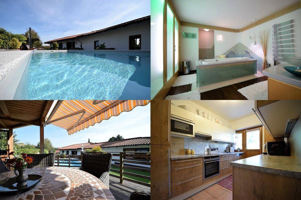 Zum Verkauf kommt dieses hochwertige Wohnhaus in herrlicher Grünlage im Gemeindegebiet von Weibern. Das Objekt befindet sich auf einem mit 2371m² Größe wirklich riesigem Grundstück. Der wunderschön angelegte Garten überzeugt mit einem hochwertigen Pool. Im Untergeschoß des Hauses gibt es einen hochwertigen Wellnessbereich, eine Sauna und einen Fitnessraum. Wohnhaus: Das ursprünglich 1969 errichtete und 1972 erweiterte Objekt präsentiert sich als großer Bungalow auf einer Ebene und bietet gut 170m² Wohnfläche. Derzeit wird das Objekt mit einem privaten Wohnteil, einem Wintergarten und einem Gästebereich genutzt. Es wäre aber genauso möglich das Objekt komplett zu bewohnen und die Schlafräumlichkeiten in den Gästebereich zu übersiedeln. Auch die Nutzung des Gästebereiches als Arbeitsbereich mit bis zu 3 Büro-Räumen wäre denkbar. Im Untergeschoß, welches große Fenster bietet, gibt es ebenfalls ein Gästezimmer, einen großen Fitnessraum mit Sauna und einen modernen Wellnessraum mit Whirlpool und Regendusche. Erdgeschoss: Durch die schöne Vollholz-Haustüre betritt man den großen Eingangsbereich. Zur linken Seite befindet sich der helle Wintergarten mit vorgelagerter überdachter Terrasse, sowie 2 Gästezimmer. Für diesen Bereich gibt es zusätzlich auch eine separate Haustüre. Zur linken Seite befindet sich der private Wohnbereich mit einem modernen Badezimmer mit Dusche und Toilette. Der erste 30m² große Raum, welchen man betritt, wird derzeit als Billiard-Raum genutzt. Von dort gelangt man in die moderne Küche sowie ins Esszimmer. Dahinter befindet sich das helle 23m² große Wohnzimmer, sowie das derzeitige Schlafzimmer. Von der Küche aus gelangt man auf die große Terrasse mit Pool und in den riesigen privaten Gartenbereich. Untergeschoss: Im Untergeschoss befindet sich ein modern gestalteter Wellnessraum mit Whirlpool, Regendusche und Toilette. Dahinter befindet sich ein großer Fitnessraum mit neuwertiger Sauna. Im rechten Untergeschoßteil gibt es einen Lagerraum für Vorräte, den Heizraum, eine große Waschküche, ein gemütliches Gästezimmer und ein Abstellraum. Das Untergeschoss ist teilweise beheizt. Garten und Außenbereich: Das 2371m² große, komplett als Baugrund gewidmete, Grundstück wurde perfekt gestaltet und bietet verschiedene Plätze zum Verweilen und Entspannen. Bei der Gestaltung wurde ein besonderes Augenmerk daraufgelegt, den eigentlichen Gartenbereich komplett von der Haus-Vorderseite und den umliegenden Nachbar-Objekten abzuschirmen und eine richtige Ruhe-Oase zu schaffen. Besonders hervorzuheben ist der riesige Terrassenbereich mit überdachtem Grillplatz und dem vor 5 Jahren neu errichteten Pool. Neben dem Pool gibt es eine schöne Poollaube mit Sitzgelegenheit und Sonnenschutz. Im westlichen Teil des Gartens gibt es eine leichte Anhöhe mit einer großen Gartenhütte am oberen Ende. Unter einer großen Linde gibt es noch eine neu errichtete Pergola. Auf der Südseite des Hauses, direkt vor dem Wintergarten gibt es noch eine überdachte Terrasse, die zum Frühstücken und Verweilen einlädt. Östlich vom Haus gibt es schön versteckt noch eine kleinen Gartenbereich mit mehreren Hochbeeten, einer Gelegenheit zum Wäsche aufhängen sowie einen geräumigen Geräteschuppen. Garage und Carport: Rechts neben dem Haus gibt es noch eine große Einzelgarage mit 8m Länge, ein großer Carport und einen zusätzlichen Abstellbereich für 2-3 Fahrzeuge. Sanierungen: Das Objekt wurde ursprünglich 1969 errichtet. 1972 wurde der Gästebereich angebaut. Zwischen 2004 und 2011 wurde das Objekt kernsaniert. Dabei wurden Fenster, Dach, Heizung, Leitungen, Strom und ein Teil der Böden komplett erneuert. Die Küche wurde 2015 erneuert. Das Badezimmer wurde 2020 neu gemacht. Der Außenbereich mit Pool wurde 2015 komplett gestaltet und errichtet. Zusätzlich wurde der Garten letztes Jahr mit einem Rasenmähroboter versehen. Technik: Das komplette Haus wird mittels Heizkörper über eine zentrale Ölheizung beheizt. Der Öltank befindet sich draußen unter dem Eingangsbereich, wodurch das Untergeschoß komplett geruchfrei ist. Lage und Infrastruktur: Das Objekt liegt in einer gehobenen Siedlung in der Ortschaft Weibern. Bushaltestelle, Volksschule, Kindergarten, Einkaufsmöglichkeit, Gasthaus und Ortszentrum sind nur 750 Meter entfernt und wären somit sogar fußläufig erreichbar. Entfernungen: Aistersheim 4km, Haag am Hausruck 5km, Meggenhofen 8km, Ried 20km, Vöcklabruck 25km, Wels 30km, Attersee 35km, Gmunden 38km, Linz 60km, Salzburg 80km Nutzen Sie diese Top-Gelegenheit, dieses hochwertig ausgestattete Objekt Ihr Eigen zu nennen - Eine Gelegenheit, bei der das Preis-Leistungsverhältnis definitiv stimmt!
