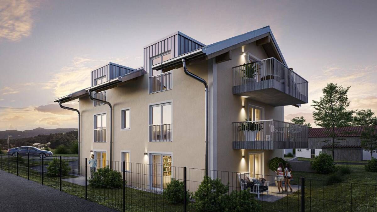 Die LageDas Salzburger Seenland bildet einen attraktiven Rahmen für Urlaub, Kultur, sportliche Betätigung in der Natur und Erholung. Die Region lädt mit Ihren Seen, Wiesen und Wäldern zum Entspannen und zu aktiven Sportmöglichkeiten ein. Ergänzt wird die landschaftliche Schönheit des Seenlandes durch die weltbekannte Mozartstadt Salzburg sowie die österreichischen Alpen in unmittelbarer Nähe. Für Wanderer und Naturliebhaber öffnet sich dem Erholungsuchenden in Koppl ein kleines Paradies.Hier bietet sich auch eine hervorragende Infrastruktur. Einkaufsmöglichkeiten für den alltäglichen Bedarf, Arzt, Apotheke und traditionell geführte Gasthöfe sind in naher Umgebung. Zum Einkaufen ins Zentrum der Stadt Salzburg, wandern, spazieren und Badespaß am nächstgelegenen Fuschlsee - eine Station der öffentlichen Verkehrsmittel befindet sich in ca. 500 m Entfernung vom Wohnhaus. Die Buslinie 150 bringt Sie stressfrei ins Umland. Die nächste Autobahnanbindung liegt in ca. 5 km Richtung Thalgau.Der Ortsteil Ladau gehört zur Gemeinde Koppl, am Rande der Salzburger Seenlandschaft des Salzkammergutes.Das ProjektEingebettet in die Idylle der weitläufigen Landschaft, umgeben von sehr wenigen, stilvollen Einfamilienhäusern, entsteht ein Bauprojekt mit nur 5 Wohneinheiten. Für 2 + 3-Zimmer-Wohnungen, über 3 Stockwerke verteilt, wurden hier Grundrisse von ca. 40 m² bis ca. 96 m² geplant. Jeder Wohnung ist auch ein Außenbereich zugedacht, mit Garten im Erdgeschoß und Balkon in den oberen Geschoßen.Alternativ und auf Kundenwunsch, besteht die Möglichkeit der Zusammenlegung von 2 Wohnungen, wie hier angeführt z.B. Top 1 + Top 2.Modern und hochwertig ausgestattet ist der Stil des Wohnhauses der Umgebung angepasst. Beheizt wird das Objekt mittels einer zentralen Luftwärmepumpe. Über ein zentrales Raumthermostat lässt sich die Temperatur der Fußbodenheizung in der Wohnung einfach regeln. Für ein gesundes Raumklima ist eine automatische Wohnraumlüftung in jedem Wohnraum vorgesehen, diese bietet einen gleichmäßigen Luftaustausch. Die Installation einer Photovoltaikanlage zur Stromerzeugung am Dach des Hauses beweist eine kluge und umweltbewusste Planung des Bauträgers. Alle Etagen können mit einem Lift erreicht werden. Den Penthousebewohnern steht exklusiv eine eigene Liftfahrt in den Wohnraum zur Verfügung.Das Wohnhaus ist voll unterkellert, hier sind u.a. die zugehörigen Kellerabteile mit jeweils ca. 3 m²/Abteil als auch die Tiefgarage angedacht. Eine zentrale Schließanlage gewährleistet eine gesicherte Ein- und Ausfahrt zu den Autoabstellplätzen im Tiefgeschoß. Bedienen lässt sich das Sektionaltor per Handsender bequem vom Fahrzeug aus. Die Freistellplätze vor dem Haus sind entweder asphaltiert oder gepflastert, ein eigens gekennzeichneter Außenstellplatz steht Besuchern des Hauses zeitlich begrenzt zur Verfügung.Die WohnungenDie Wohnungen Top 1 + Top 2 im Erdgeschoß sind auf einer Ebene angelegt, über das Wohnzimmer gelangt man direkt auf die Terrasse und weiter in den Garten. Top 3 und Top 4 befinden sich im 1 Obergeschoß, wobei die Wohneinheit Top 4 im Maisonette-Stil errichtet wird. Über eine innenliegende Treppe gelangt man in die im 2 Obergeschoß befindlichen Räumlichkeiten. Beide Wohnungen haben als Außenbereich einen Balkon.Der Zugang zur Penthousewohnung Top 5 funktioniert über 2 Wege. Zum einen führt eine innenliegende Treppe vom Eingang im 1 Obergeschoß, in die Wohnräume ins 2 Obergeschoß, zum anderen wird den zukünftigen Bewohnern hier exklusiv eine Penthousefahrt mit dem Lift ins 2 Obergeschoß ermöglicht - direkt in die Wohnräume. Die Anfahrt mit dem Lift ins Penthouse ist gesichert versperrt, sodass nur Wohnungsbesitzer und Befugte Zutritt zu den hier ausgeführten Wohnräumen haben. Der großzügige Balkon wird Richtung Süden ausgerichtet und ist ebenfalls über das Wohnzimmer zu betreten.Die Bäder im Haus werden vom Bauträger mit Fenstern ausgestattet und garantieren somit eine natürliche Belüftung. In allen Wohneinheiten findet sich ein eigener Waschmaschinenanschluss.Bei allen Fenstern werden Leerkästen für den Sonnenschutz mit Leerverrohrung für eine mögliche elektrische Steuerung errichtet.Jede Wohnung wird inkl. eines Parkplatzes angeboten, entweder mit Tiefgaragenstellplatz oder einem Außenstellplatz im Freien.Top 1, Top 3 und Top 5 Der Tiefgaragenstellplatz ist im Kaufpreis inkludiert, mit der Option, einen weiteren TG-Stellplatz/Außenstellplatz dazu kaufen zu können. Top 2 und Top 4 verstehen sich inkl. eines Außenstellplatzes mit der Option, einen TG-Stellplatz oder einen weiteren Außenstellplatz dazu kaufen zu können. Optional Top 1 + Top 2 zusammengelegt Der Tiefgaragenstellplatz sowie der Außenstellplatz sind im Kaufpreis inkludiert, mit der Option einen weiteren TG-Stellplatz/Außenstellplatz dazu kaufen zu können.TG-Stellplatz: € 17.500,00 Außenstellplatz: € 10.00,00 Möglichkeit Carport wird geprüft: € 20.000,00Fakten zur Zusammenlegung von Top 1 + Top 24-Zimmer-Wohnung im EG mit Garten süd- und westseitigWNFL. ca. 122,31 m²Terrasse 1 ca. 12,10 m², Terrasse 2 ca. 9,90 m², Garten ca. 225 m², Strom- und LichtauslassLiftAbstellraumKellerabteil ca. 6 m², mit Licht- und Stromauslass inkl. LichtkörperTG-Platz und Außenstellplatz bereits im Preis inkludiertFußbodenheizungautomatische Wohnraumbelüftung geplante Baufertigstellung: Ende 2022KP € 703.000,00 inkl. UmplanungskostenInfrastruktur / EntfernungenGesundheit Arzt <2.000m Apotheke <2.000m Klinik <5.500m Krankenhaus <9.500m Kinder & Schulen Schule <1.000m Kindergarten <1.000m Universität <10.000m Nahversorgung Supermarkt <1.500m Bäckerei <2.500m Einkaufszentrum <6.000m Sonstige Bank <1.500m Geldautomat <2.500m Post <2.500m Polizei <2.500m Verkehr Bus <1.000m Autobahnanschluss <4.500m Bahnhof <8.000m Angaben Entfernung Luftlinie / Quelle: OpenStreetMap