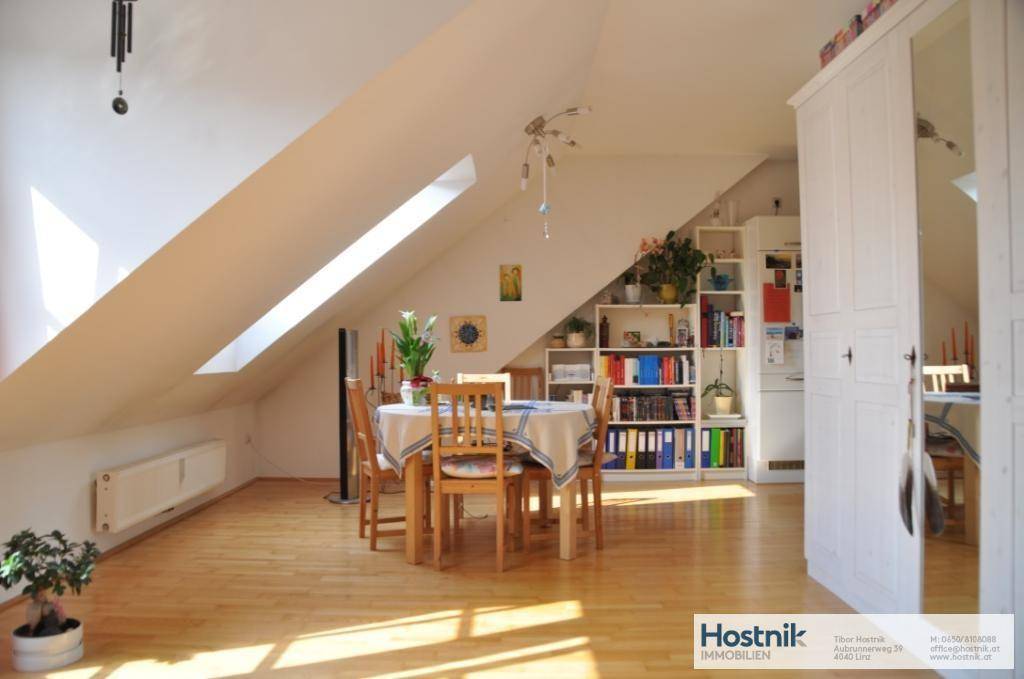 Ruhige, sonnige 2 Zimmer Wohnung am grünen Stadtrand von Linz. Diese gemütliche Dachgeschosswohnung hat einiges zu bieten. Sie befindet sich in einer ruhigen grünen Sackgasse am Stadtrand von Linz Urfahr und hat dennoch eine top Anbindung an die öffentlichen Verkehrsmittel. Ebenfalls nur wenige Fußminuten entfernt befinden sich sämtliche Nahversorgern des täglichen Bedarfs. Das Naherholungsgebiet Pleschinger See, der Donaudamm und die Universität sind nur einen Katzensprung entfernt. Die Wohnung ist hell und gemütlich, mit Parkettboden und einer Dan Küche ausgestattet und entspricht den derzeitigen Standards.Angaben gemäß gesetzlichem Erfordernis: Miete € 554,58 zzgl 10% USt. Betriebskosten € 117,91 zzgl 10% USt. Umsatzsteuer € 67,25 ------------------------------------------------------------------ Gesamtbetrag € 739,74 ------------------------------------------------------------------ Heizwärmebedarf: 37.1 kWh/(m²a) Klasse Heizwärmebedarf: B