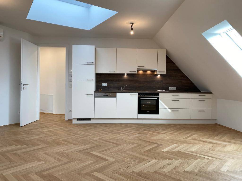 Aufgrund der aktuellen Corona Situation bieten wir Ihnen einen kostenlosen Videorundgang durch die Wohnung an: https://www.youtube.com/watch?v=-55Wmqe9_7o + Beheizung erfolgt mittels Luftwärmepumpe mit Fußbodenheizung, welche im Sommer auch die Kühlung vom ganzen Haus übernehmen kann. + Dachgeschosswohnung T5 ist mit einer zusätzlichen Klimatisierung von LG ausgestattet. + Alle Fenster sind mit elektrische Rollos, die Dachflächenfenster mit elektrischen Markisetten. + Böden sind Eichefischgrättparkettböden von der Firma Weitzer. + Fliesen kommen von RAK Ceramics. + Innendämmung mit Kalziumsilikatplatten 8cm stark im gesamten Haus angebracht. + Hauszentralschließanlage von der Firma DOM. + Wohnungseingangstüren WKIII von der Firma Mitsch. + Innentüren 220cm hoch Firma Kunex weiss lackiert. + SAT Hausanlage und A1 Telekom in allen Räumen. + Alle Tops sind mit einer neuen Einbauküche mit Siemensmarkengeräten ausgestattet. + Das Haus befindet sich in einer ruhigen zentralen Wohnlage in Baden. Diese am Rand der Kurthermenstadt Baden gelegene Dachgeschosswohnung besticht durch ihre unmittelbare Nähe zum Helenental und den umliegenden Weinbergen, die zu einem entspannenden Spaziergang zu den Burgruinen Rauheneck und Scharfeneck sowie der Königshöhle einladen. Trotz der Nähe zur Natur finden sich im Umkreis von nur wenigen Gehminuten eine Bank, eine Apotheke, eine Volksschule, ein Tierarzt, ein Kindergarten, ein Bäcker sowie ein Café und mehrere Wirtshäuser und Heurigen. Nachts genießen Sie dank des Dachfensters einen ungetrübten Ausblick auf den Sternenhimmel über Baden bei Wien.Angaben gemäß gesetzlichem Erfordernis: Miete € 820,48 zzgl 10% USt. Betriebskosten € 136,79 zzgl 10% USt. Umsatzsteuer € 95,73 ------------------------------------------------------------------ Gesamtbetrag € 1053