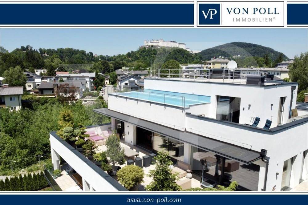Eingebettet zwischen Donnenberg Park und Schloss Leopoldskron, mit Sicht zur Festung Hohensalzburg, befindet sich die Mehrfamilien-Villa mit nur 6 Wohneinheiten. Das im Jahr 2017 neu errichtete Objekt befindet sich in besonders ruhiger Sackgassen-Lage im Salzburger Stadtteil Nonntal. Hier findet Wohnen auf allerhöchstem Niveau statt. Das Penthouse der Superlative erstreckt sich auf über 150m2 Wohnfläche im 2.Obergeschoß und 46m2 im Dachgeschoss. In der unteren Ebene befindet sich der großzügige Wohn & Essbereich mit ca 90 qm. Das Ambiente ist mit Worten schwer zu beschreiben, das muß man einfach selber fühlen... Hohe Räume, die Sonne vom Aufgehen bis zum Untergehen, ein traumhafter Blick auf die Festung und die imposante Bergwelt, uvm... Weiters befinden sich noch ein Zimmer inklusive Ankleide, ein Badezimmer sowie ein WC auf dieser Ebene. Lebensqualität pur bietet auch die Terrasse mit über 170 qm, welche fast rundherum geht und herrlich viel Platz zum Entspannen und gemütlichem Beisammensein mit Freunden bietet. Im Jacuzzi kann man den Sonnenuntergang geniessen und die Seele baumeln lassen. Im Dachgeschoß, welches man selbstverständlich auch über den Lift erreicht, befinden sich ein weiteres Schlafzimmer, ein Badezimmer, eine hochwertige Sauna mit Dampffunktion und Infrarotsitz, sowie ein WC. Die Dachterrasse mit weiteren 55 qm und einem Pool runden das Wohnerlebnis in Perfektion ab. Es gibt wahrscheinlich kaum ein vergleichbares Penthouse in Salzburg, das Wohnen in diesem hohen Anspruch ohne Kompromisse bietet. Beide Stockwerke sind mit dem Lift von der Tiefgarage aus direkt erreichbar.