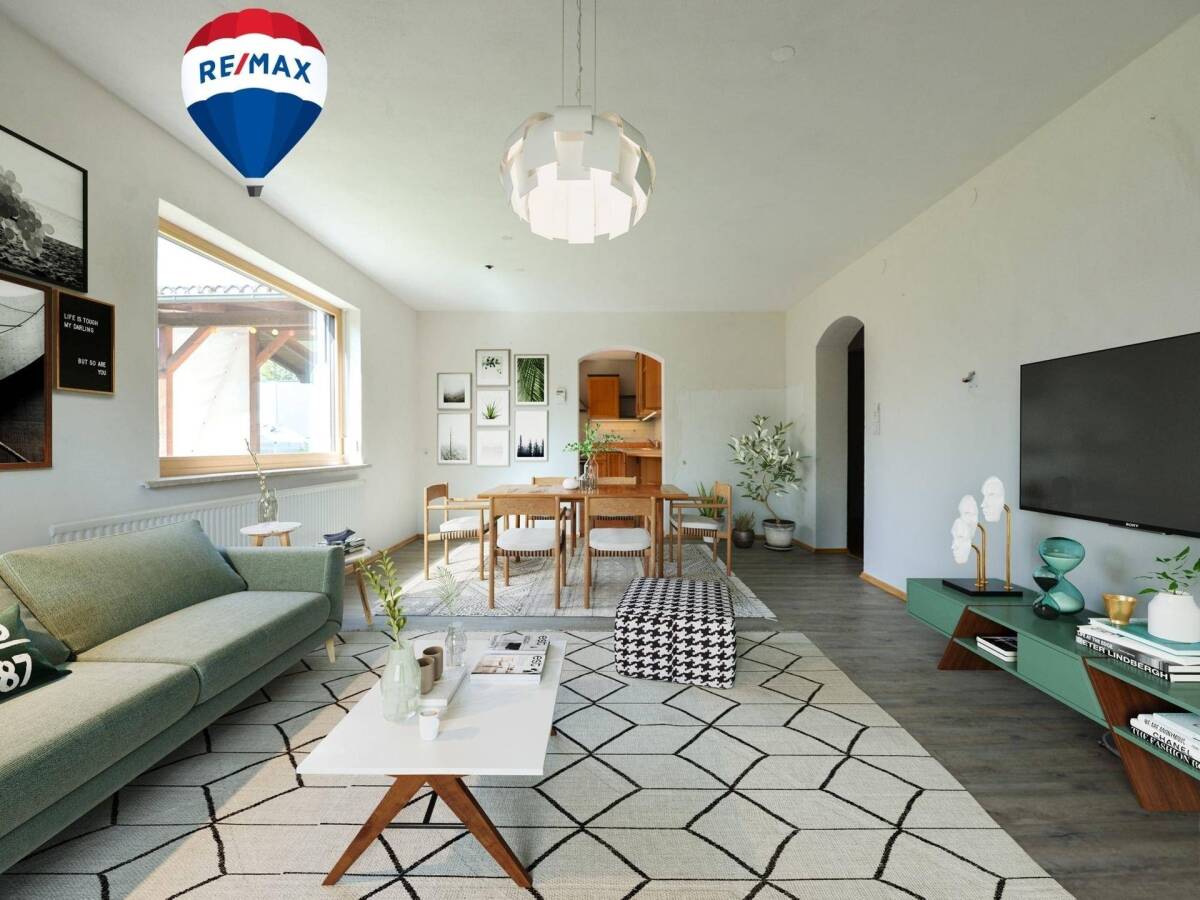 8 Zimmer Sackgasse Balkon 2 Garagen 1 Carport Kleiner eigener Garten Genügend Platz für die ganze Familie Offenes Stiegenhaus Pergola neben der Küche Badezimmer in beiden Stockwerken