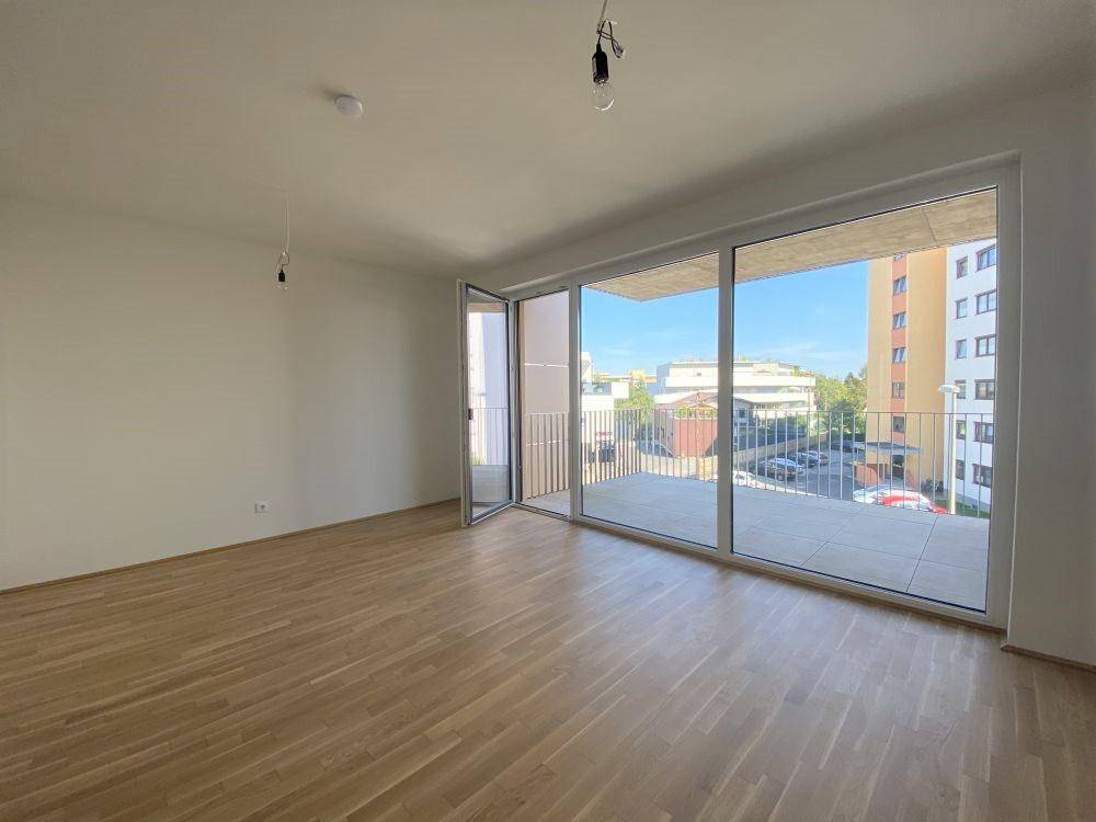 Diese wunderschöne, rund 70 m² große 3-Zimmer-Erstbezugswohnung befindet sich zentral jedoch ruhig gelegen im 2. Liftstock einer modernen, neu errichteten Wohnanlage in der Gallmeyergasse/Reininghausstraße zwischen den beliebten Grazer Bezirken Eggenberg und Wetzelsdorf mit ausgezeichneter Infrastruktur und idealer öffentlicher Anbindung. Die Wohnung besticht besonders durch ihre hochwertige Ausstattung und die perfekte Raumaufteilung, bestehend aus Vorraum, einem Abstellraum, einem großem Wohn-/ Essbereich mit moderner Küche, zwei getrennt begehbaren Schlafzimmern, Badezimmer mit einer ebenerdigen Dusche und extra WC. Vom Wohnzimmer aus gelangt man auf den Balkon, welcher zum Entspannen im Freien einlädt. Die großen Fenster- und Glasflächen, welche die Wohnung mit Tageslicht durchfluten, schaffen ein sehr angenehmes Wohnambiente. Die gesamte Wohnung wird komfortabel mittels Fußbodenheizung über Fernwärme beheizt und ist mit hochwertigem Parkettboden, der Vorraum und der Sanitärbereich sind mit wertigen, modernen Fliesen ausgestattet. Die neue, hochwertige Küche bestehend aus E-Herd mit Ceranfeld und Dunstabzug, Kühlschrank, Gefrierschrank und Geschirrspüler ist zusätzlich um € 44,- brutto anzumieten. Der Wohnung ist ein KFZ-Tiefgaragenabstellplatz zugehörig, welcher optional um € 79,80 brutto anzumieten ist. Weiters ist der Wohnung ein Kellerabteil zugehörig und das Haus verfügt über eine hauseigene SAT-Anlage. Bei den angezeigten Bildern handelt es sich um Symbolbilder. – Top 16 Es besteht die Möglichkeit weitere 2 bis 3-Zimmer-Wohnungen zwischen 50 m² und 70 m² jeweils mit großen Freiflächen in Form von Terrassen, Balkonen und Dachterrassen anzumieten. Mietpreis inkl. BK und USt., exkl. HK HK brutto: € 67,07