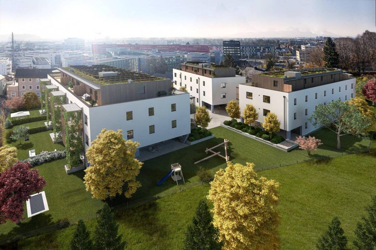 Im Salzburger Stadtteil Itzling entstehen 3 Wohnhäuser mit 2 & 3 Zimmer Wohnungen im Baurechtseigentum. Trotz seiner Lage in der Stadt Salzburg begeistert das Projekt mit seinen zahlreichen Grünflächen. Alle Wohnungen verfügen entweder über Terrassen und Gartenflächen oder über sonnige Balkone. Eine Tiefgarage mit ausreichend Stellplätze, sowie ein Personenlift schaffen zusätzlichen Wohnkomfort.Sie erreichen den Eingang zu Ihrer neuen 2 Zimmer Wohnung über das Treppenhaus oder bequem mit dem Lift. Im Vorraum haben Sie genug Platz für die Einrichtung einer Garderobe. Weiter geht es in das Zentrum dieser Wohnung. Im Wohn-Essbereich fühlen Sie sich so richtig wohl. Angrenzend an den Kochbereich ist ein praktischer Abstellraum, welcher hervorragend als Speis genutzt werden kann. Vom Wohn-Essbereich aus haben Sie Zutritt zum Balkon mit Westausrichtung. Hier genießen Sie die Feierabend Sonne in vollen Zügen. Das Schlafzimmer verfügt über ausreichend Platz für einen Schrank. Das Bad mit Toilette ist mit einem Waschmaschinenanschluss ausgestattet.Der Wohnung ist 1 Tiefgaragen Stellplatz zugewiesen.Der Kaufpreis zzgl. 1 Tiefgaragen Stellplatz für €22.000,- beträgt €273.000,-.Jetzt NEU: Bis zu €54.000,- Wohnbauförderung sichern!! Infrastruktur / EntfernungenGesundheit Arzt <1.000m Apotheke <1.000m Krankenhaus <2.500m Klinik <2.000m Kinder & Schulen Schule <500m Kindergarten <500m Universität <500m Höhere Schule <2.000m Nahversorgung Supermarkt <500m Bäckerei <1.000m Einkaufszentrum <2.500m Sonstige Bank <500m Geldautomat <500m Post <1.500m Polizei <500m Verkehr Bus <500m Bahnhof <500m Autobahnanschluss <1.000m Flughafen <4.500m Angaben Entfernung Luftlinie / Quelle: OpenStreetMap