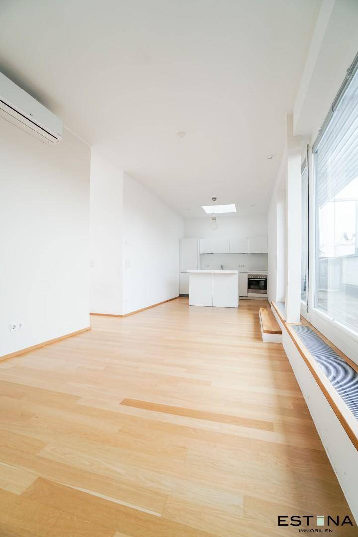 Zur Vermietung gelangt eine elegante ca. 135 m2 Dachgeschosswohnung mit Terrasse und Blick über die Wiener Innenstadt.Vom Vorraum aus haben Sie Zugang zu einem großzügigen Schlafzimmer, einem modernen und hochwertig ausgestatteten Badezimmer mit Badewanne und Dusche. Abgerundet wird die erste Etage durch einen Balkon, welchen Sie begrünen können. So kreieren Sie einen wunderschönen Blick ins Grüne mitten in der Stadt. Über einen modernen Stiegenaufgang gelangen Sie in den lichterfüllten Wohnraum auf der zweiten Ebene, welcher mit einer großen Glasfläche ausgestattet ist. Zentrum des hellen Wohnraumes bildet die geräumige Küche, die zum Kochen und Zusammensitzen einlädt. Auch der Wohnraum bietet genügend Platz für eine große Sofalandschaft. Als besonderes Highlight lädt eine weitere Terrasse, an warmen Sommertagen, zum Verweilen im Freien ein.Raumaufteilung: 1.Ebene:schöner Eingangsbereich2 geräumige Schlafzimmer mit Bad en Suite separate Toilette Abstellraum mit Waschmaschinenanschluss Balkon2. Ebene:große Wohnküche mit modernen EinbaugerätenSüdterrasseAusstattung:schöner Parkettbödenfranzösische FensterKlimaanlageBalkon und TerrasseAußen- sowie InnenjalousienKosten: Miete: € 2.795,- inkl. BK und USt. Kaution: € 8.385,- Provision: € 6.098,18 inkl. 20 % USt.Kontakt: Bei Fragen oder zur Vereinbarung eines Besichtigungstermins wenden Sie sich bitte an Herrn Benedikt Wawra unter wawra@estina.at oder mobil unter 0676 331 85 44.