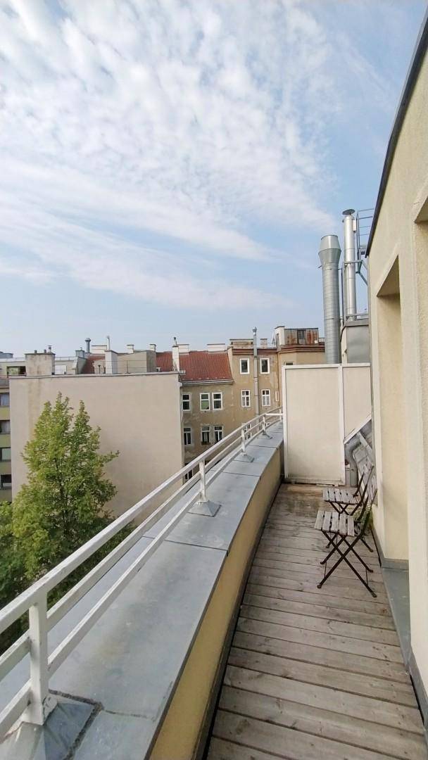 Sehr geehrte Damen und Herren, Zur Vermietung gelangt eine helle Garçonnièrewohnung, welche sich im Dachgeschoss eines schönen Neubaus Nähe Augarten und Wallensteinplatz im 20.Bezirk, befindet.Die ca. 42 m² Wohnfläche gliedert sich wie folgt auf:Raumaufteilung:VorraumAbstellraumBadezimmer mit Badewanne und WC, ohne WM-Anschluss (eine Waschküche ist im Haus vorhanden)Miniküche mit Mikrowelle,2 Herdplatten, Kühlschrankein geräumiges ZimmerBalkonHighlights:Parkettbödentolle InfrastrukturBalkonDas gepflegte Haus verfügt weiters über einen Fahrradabstellraum, Kellerabteil sowie eine Waschküche. Beheizt wird mittels Zentralheizung, das Heizkostenakonto hierfür beträgt monatlich ca. € 41,00. Das Mietverhältnis ist auf 5 Jahr befristet. Eine Besichtigung ist jederzeit möglich. Ich freue mich auf Ihre Nachricht!Wir weisen darauf hin, dass zwischen dem Vermittler und dem Auftraggeber ein wirtschaftliches Naheverhältnis besteht. Der Vermittler ist als Doppelmakler tätig.Infrastruktur / EntfernungenGesundheit Arzt <500m Apotheke <500m Krankenhaus <1.500m Klinik <1.500m Kinder & Schulen Schule <500m Kindergarten <500m Universität <1.500m Höhere Schule <1.000m Nahversorgung Supermarkt <500m Bäckerei <500m Einkaufszentrum <2.000m Sonstige Bank <500m Geldautomat <500m Post <500m Polizei <500m Verkehr Bus <500m Straßenbahn <500m U-Bahn <1.000m Bahnhof <1.000m Autobahnanschluss <1.500m Angaben Entfernung Luftlinie / Quelle: OpenStreetMap