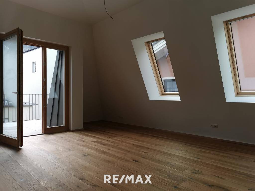 Objekthighlights: • Neubau - Erstbezug • hochwertige Ausstattung • lichtdurchflutete Wohnung • hohe Räume • Loggia + Balkon • Tiefgaragenstellplatz möglich • Stadtzentrum - Altstadt in 2 Gehminuten erreichbar • ausgezeichnete Infrastrukturlage Objektbeschreibung Die Top W 15 verfügt über eine Wohnküche mit integriertem Essbereich, zwei Schlafzimmern sowie ein Bad mit WC. Von der Wohnküche aus gelangt man direkt auf die Dachterrasse, weiters gibt es noch zusätzlich eine Loggia. Ein Kellerabteil zählt als Zubehör zur Wohnung. Wir ersuchen um Verständnis, dass wir nur schriftliche Anfragen mit vollständigem Namen, Adresse und Telefonnummer bearbeiten können, da wir dem Eigentümer gegenüber dazu verpflichtet sind. Selbstverständlich werden Ihre Daten vertraulich behandelt.Angaben gemäß gesetzlichem Erfordernis: Miete € 870 zzgl 10% USt. Betriebskosten inkl Heizkosten € 121,7 Umsatzsteuer € 87 ------------------------------------------------------------------ Gesamtbetrag € 1078,7 ------------------------------------------------------------------ Heizwärmebedarf: 31.8 kWh/(m²a) Klasse Heizwärmebedarf: B Faktor Gesamtenergieeffizienz: 0.76 Klasse Faktor Gesamtenergieeffizienz: A