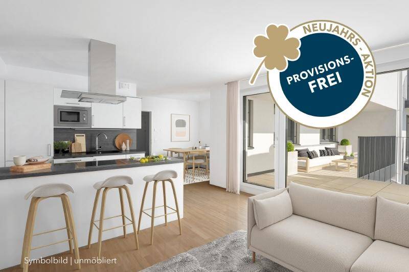Neujahrsaktion: Provisionsfrei bis 31.01.2021 Diese traumhafte 3-Zimmer-Wohnung im 4. Obergeschoss besteht aus einer großzügigen Wohnküche mit direktem Ausgang auf die südseitige Loggia, zwei Schlafzimmern, einem Vorraum, einem Badezimmer mit Badewanne, Waschtisch und Waschmaschinenanschluss sowie einem WC mit Handwaschbecken. Die Busstation befindet sich direkt vor der Türe! Das Naherholungsgebiet Lobau ist nur wenige Gehminuten entfernt. Genießen Sie in dieser Wohnung folgende Premiumausstattung: .) Fußbodenheizung (individuell einstellbar) .) 3 fach Schallschutzverglasung der Fenster und Balkontüren .) einbruchshemmende Eingangststüre der Klasse WK3 .) hochwertige Einbauküche der Marke EWE .) Echtholzparkettboden .) Videogegensprechanlage .) elektrische Außenbeschattung .) umweltfreundliches Heizen mittels Erdwärme .) kontrollierte Wohnraumlüftung • ) Die monatliche Bruttovorschreibung für diese Wohnung reduziert sich für die ersten sechs Monate ab Mietbeginn um € 250,00 je Monat. Ein Bonus/Nachlass auf weitere Mieten besteht nicht. Aktion nur gültig, wenn der Mietvertrag bis 31.12.2020 abgeschlossen wird. Nicht in Verbindung mit anderen Aktionen kombinierbar.