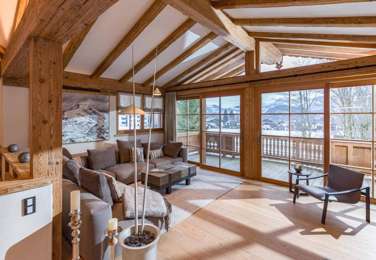 Dieses traumhaft gelegene Landhaus begeistert seine neuen Eigentümer nicht nur auf Grund seiner tollen Lage sondern auch mit fantastischen Ausstattungsdetails und einem durchdachten Wohnkonzept. Beim Betreten dieser exklusiven Liegenschaft wird schnell klar, wieviel Wert seitens des Eigentümers auf traditionelle, hochwertige Materialien und höchste Bauqualität gelegt wurde. Die sich ebenfalls auf dieser Ebene befindenden vier Schlafzimmer sind großzügig angelegt und teilweise mit Altholzelementen und Schrankräumen versehen und verfügen über je ein schönes Bad en suite. Über eine repräsentative Treppe oder den Aufzug gelangen Sie in das Obergeschoß. Dieser beinahe 100 m² große Bereich gilt als absolutes Highlight. Der Wohn-Essbereich mit offenem Sichtdachstuhl und Kamin begeistert durch seine offene Anordnung und die großzügigen Glasflächen, die eine tolle Lichtdurchflutung der Räumlichkeiten zulassen. Die mit Altholzelementen versehene Küche lässt keinerlei Wünsche offen und lädt dabei geradezu zum Kochen für Ihre Gäste ein. Eine wunderschön ausgestattete Gästetoilette rundet diese Ebene entsprechend ab. Erwähnenswert sind sicherlich noch die großzügigen Terrassen/Balkone die in alle Himmelsrichtungen einen atemberaubenden Ausblick ermöglichen. Über eine Außentreppe gelangen Sie von der Ost-Terrasse direkt in den wunderbar und pflegeleicht angelegten Garten. Auch hier, auf der Ebene des Erdgeschoßes haben Sie einen fantastischen Ausblick von jeder einzelnen Terrasse aus, egal ob nach Süden, Norden, Westen oder Osten. Im ersten Untergeschoß angekommen tauchen Sie in das nächste Highlight dieser wunderbaren Ausnahmeliegenschaft ein, in den Poolbereich. Ein fantastisches Nirosta-Becken ermöglicht Ihnen ausgiebige Schwimmabenteuer, bei denen Sie durch die leichte Hanglage einen tollen Ausblick durch die großzügigen Fensterflächen über den eigenen Garten hinweg haben. Ein separater, verglaster Fitnessraum unterstützt Sie bei Ihren sportlichen Aktivitäten. Ebenfalls befinden sich auf dieser Ebene noch eine weitere Toilette, eine Wellnessdusche und eine Sauna beziehungsweise auf Wunsch ein Dampfbad. Eine großzügige Garderobe ist praktischer Weise direkt vor dem Poolbereich angelegt. Ein weiterer Abstellraum bietet Platz für zum Bespiel Ihre Koffer oder Golfutensilien. Ein großzügiges Gästezimmer mit Bad en suite findet ebenfalls noch auf dieser Ebene Platz. Durch einen weiteren Abstellraum beziehungsweise durch eine Schleuse gelangen Sie in die, Garage die mindestens Platz für fünf Ihrer Automobile bietet. Ein weiterer, wirklich großer Abstellraum bietet mehr als genug Platz für zum Bespiel Ihre Fahrräder und/oder Schier. Im zweiten Untergeschoß befinden sich neben dem rustikal angelegten und voll ausgestatteten Weinkeller noch der Technikraum, der Wirtschaftsraum, der Elektroraum und zwei Kellerabteile. Als Tirol-Liebhaber kommen Sie wahrlich nicht um dieses wirklich wunderbare und traumhaft gelegene Objekt herum. Es existiert im Moment tatsächlich nicht viel Vergleichbares am Kitzbüheler Immobilienmarkt.