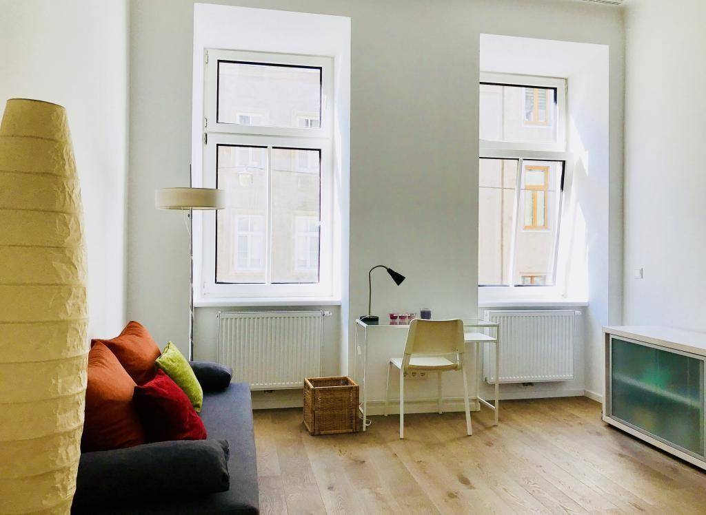 top ausgestattetes Apartment für Ihren geschäftlichen oder privaten Wienaufenthalt für einige Monate Die Wohnung wurde im Herbst 2017 komplett renoviert und eingerichtet. Sie besteht aus einem großen Wohn/Schlafzimmer , Küche mit Essplatz, Vorzimmer, Bad mit Dusche und WC. Sie ist mit Doppelbett, ausziehbarer Doppelcouch, Kleiderschrank, Schreibtisch mit Tischlampe, Esstisch mit 4 Sesseln eingerichtet. Die neue Einbauküche ist mit E-Geräten ausgestattet, Kochgeräte, Geschirr, Mikrowelle, Kaffeemaschine, Wasserkocher stehen zur Verfügung, weiters Waschmaschine, Handtücher, Bettwäsche, Fön, Personenwaage, Bügelbrett, Bügeleisen. Die Raumhöhe von 3,40 m gibt angenehmes Wohngefühl. Das Haus wurdet saniert und ein Lift eingebaut. Die Arbeiten wurden im Frühjahr 2018 abgeschlossen. Die Station Schönbrunn der U4 ist in wenigen Gehminuten zu erreichen, ebenso Stationen von Autobus und Straßenbahnen in der Mariahilferstraße, die Fahrzeit in die Innenstadt beträgt rund 15 Minuten. Mit PKW haben Sie perfekte Anbindung zur West- und Südautobahn. Einkaufsmöglichkeiten für den täglichen Bedarf sind in der Umgebung vorhanden. Der nahe Auer-Welsbach Park und Schönbrunner Schloßpark mit Schönbrunner Bad bieten in unmittelbarer Umgebung die Möglichkeit für Sport und Erholung im Grünen. Die Heizkosten betragen 50,-- /Monat Für die Endreinigung wird ein Betrag von 50,-- brutto verrechnet. Die Wohnung wird für 1 - 6 Monate vermietet. Die Provision ist für eine Mietdauer von 6 Monaten berechnet und verringert sind bei kürzerer Mietdauer. Für weitere Auskünfte und Terminvereinbarung auch zum Wochenende bzw. außerhalb der üblichen Bürozeiten erreichen Sie mich direkt unter 0676 87837526 oder 0664 2453261 und office@kralimmo.at - Dr. Marion KralAngaben gemäß gesetzlichem Erfordernis: Miete € 636 zzgl 10% USt. Umsatzsteuer € 63,6 ------------------------------------------------------------------ Gesamtbetrag € 699,6