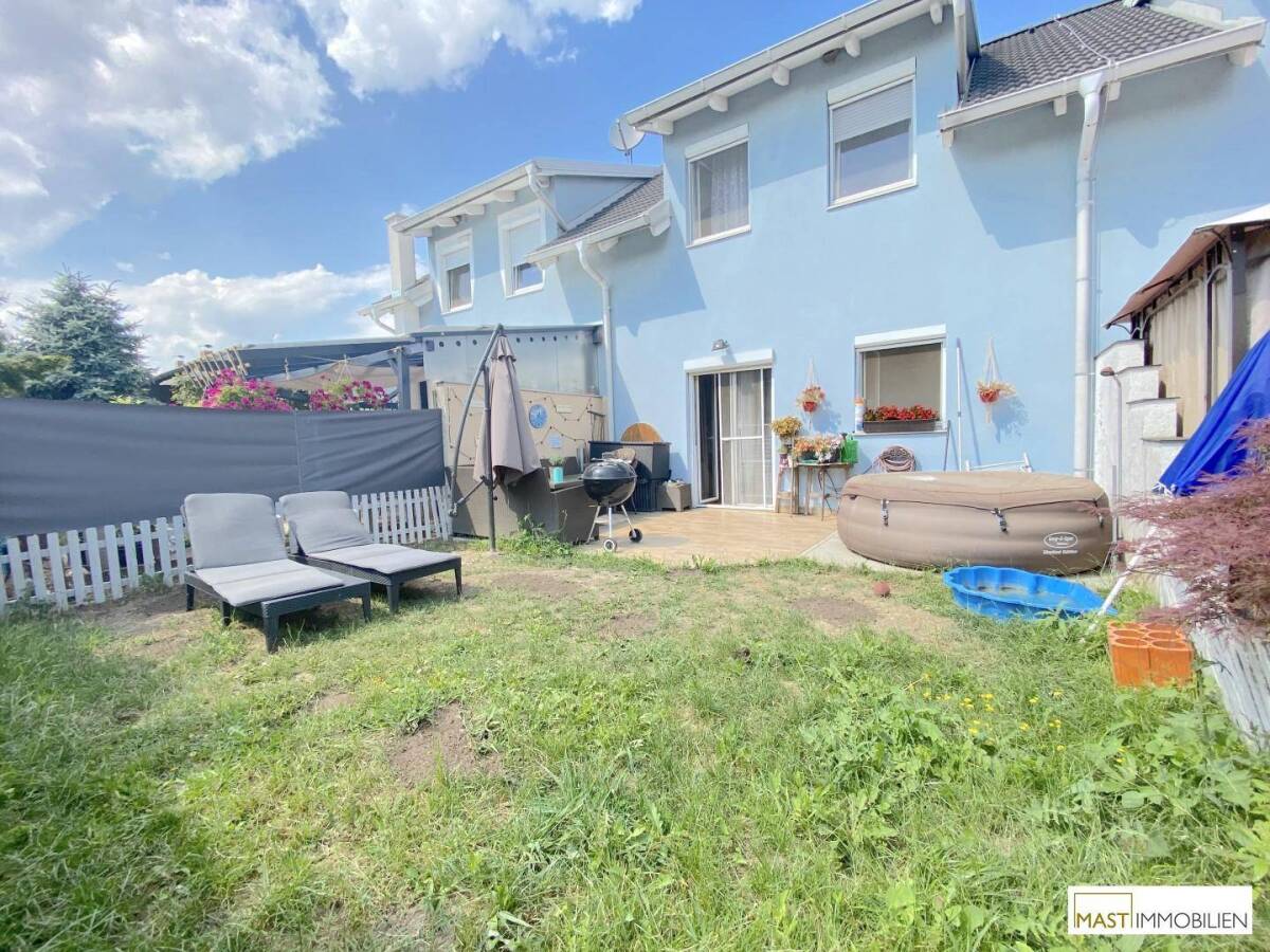 Zum Verkauf gelangt ein sehr gut ausgestattetes und gepflegtes Reihenhaus in familienfreundlicher Umgebung in Haslau a. d. Donau bei Maria Ellend.Das Haus wurde 2007 errichtet und gliedert sich im Erdgeschoß in einen Vorraum, ein separates Bad sowie eine Wohnküche mit Zugang in den südseitig ausgerichteten großzügigen Garten.Das Obergeschoß verfügt über 3 Schlafzimmer sowie ein Bad.Der Keller verfügt über weitere 42 m2 Nutzfläche, ist voll ausgebaut und wird ebenfalls als Wohnraum genutzt. Er besteht aus einem großen Hobbyraum mit leicht versteckter Waschküchen-Nische.Besonderes Highlight des Reihenhauses ist die zusätzliche Zugangsmöglichkeit gartenseitig! Weitere Besonderheiten finden sich auch bei der ausgezeichneten Ausstattung des Hauses:DichtbetonkellerRollläden bei allen Fenstern und FenstertürenInsektenschutzgitter bei allen Fenstern und FenstertürenDachflächenfenster von Velux mit BeschattungGasheizung von VAILLANTWärmeabgabe über HeizkörperGäste-WC mit Duscheinklusive Einbauküchevoll ausgebauter Keller mit HeizungSAT-AnlageTV-Anschlüsse in allen Zimmern + Kellerund Vieles mehr...Ein KFZ-Abstellplatz im Freien ist bereits im Preis inkludiert!Vereinbaren Sie einen Besichtigungstermin und überzeugen Sie sich selbst!Wir weisen darauf hin, dass zum Verkäufer ein wirtschaftliches Naheverhältnis besteht. Wir weisen hiermit auf unsere Eigenschaft als Doppelmakler gem. § 17 Maklergesetz hin.LageHauslau an der Donau bei Maria Ellend befindet sich nur wenige Kilometer von Wien entfernt und verfügt über eine ehr gute Infrastruktur. Schulen, Ärzte, Kindergärten, diverse Einkaufsmöglichkeiten etc. sind in nur wenigen Minuten erreichbar.Die Volksschule sowie der Kindergarten direkt in Haslau an der Donau sind in wenigen Minuten fußläufig erreichbar.Die Schulen in Nachbarortschaften sind bequem mit der S-Bahn erreichbar.Aufgrund der verkehrsgünstigen Lage ist die Stadtgrenze von Wien ist mit dem Auto in nur wenigen Minuten erreichbar.Öffentliche Verkehrsanbindung: Der Bahnhof Hauslau an der Donau ist nur 800m (10 Gehminuten) entfernt und ist damit für Pendler bestens geeignet.Mit der Bahn erreichen Sie zB. den Bahnhof Wien Mitte Landstraße in nur 34 Minuten.Infrastruktur / EntfernungenGesundheit Apotheke <4.000m Arzt <6.000m Kinder & Schulen Kindergarten <500m Schule <500m Nahversorgung Supermarkt <2.000m Bäckerei <4.000m Sonstige Post <2.000m Bank <7.000m Geldautomat <7.000m Polizei <4.000m Verkehr Bus <500m Autobahnanschluss <5.000m Bahnhof <1.000m Angaben Entfernung Luftlinie / Quelle: OpenStreetMap