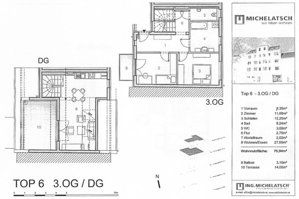Gleich einziehen und sofort wohlfühlen! Diese 3-Zimmer Maisonette-Wohnung befindet sich im 3. Stock (mit Lift) eines kleinen Mehrparteienhauses in Graz-Eggenberg. Die Wohnung verfügt über einen großzügigen Eingangsbereich, zwei getrennt begehbare Zimmer (eines davon mit Balkon in den Innenhof), ein elegantes & möbliertes Badezimmer mit Dusche und großer Badewanne, ein separat begehbares WC und einen praktischen Abstellraum. Über einen Stiegenaufgang gelangt man in das zweite Geschoss der Wohnung, wo sich der gemütliche Wohn-Essbereich samt Einbauküche befindet und die ruhige, sonnige Dachterrasse in den Innenhof zum Entspannen einlädt. Eine Garage und ein Kellerabteil sind ebenfalls vorhanden und im Mietpreis inbegriffen. Weiters steht ein Fahrradabstellraum und eine Gartenfläche zur allgemeinen Nutzung zur Verfügung.