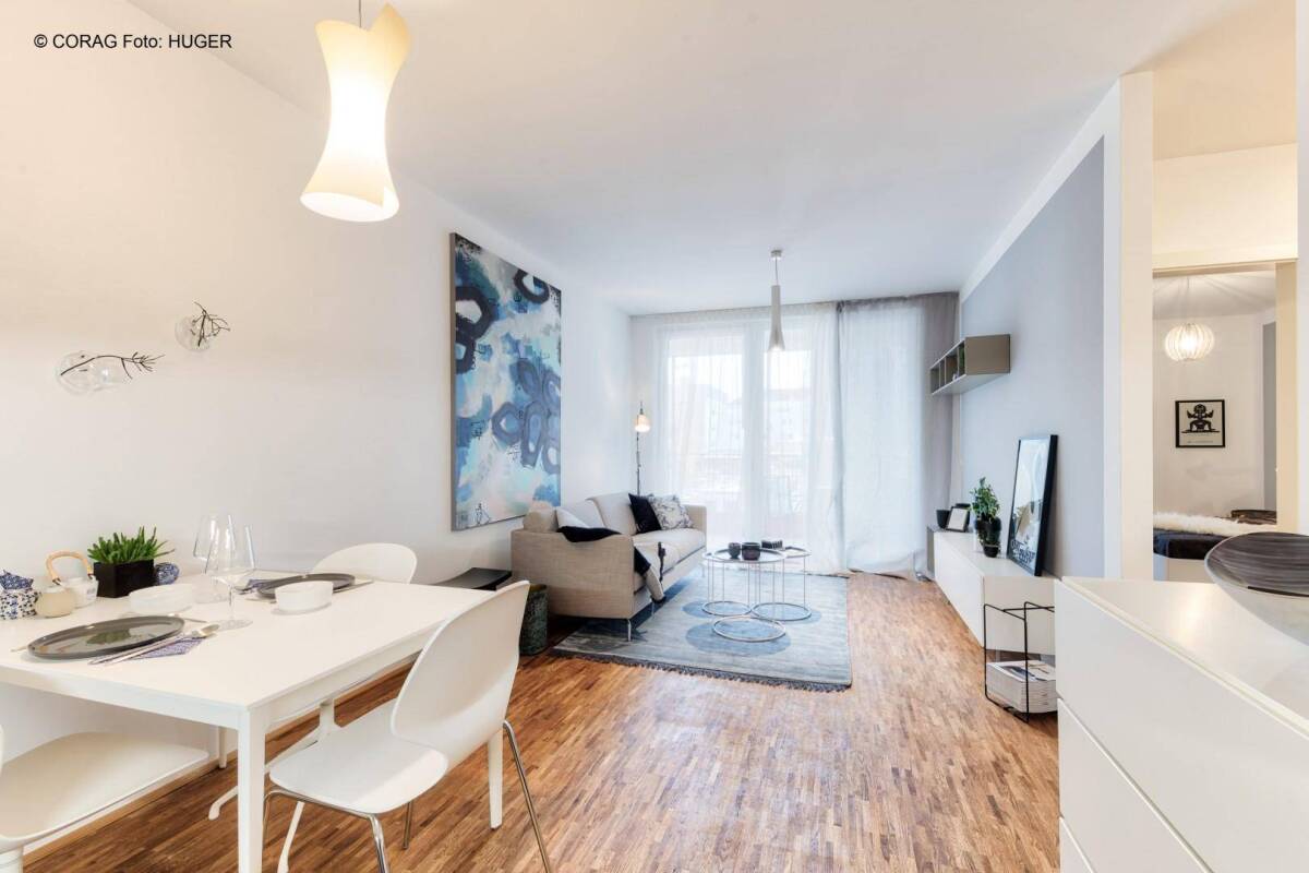Wohnfläche: ca. 49,31 m² + ca. 6,48 m² Loggia + Kellerabteil, 7 Jahre befristet zu mieten, Kündigungsfrist 3 MonateGesamtmiete: € 610,13 inkl. BK und USt.Die Wohnung gliedert sich in: Vorzimmer, Wohnküche, Loggia, Schlafzimmer, Badezimmer mit Dusche und WCStockwerkslage/Aufzug: 1.OG / JAbeziehbar ab voraussichtlich: nach VereinbarungAusstattung: Fußbodenheizung, Echtholz-Parkettböden, hochwertige Sanitäreinrichtungen, Komplettküche mit MarkengerätenKaution: 3 BruttomonatsmietenProvision: 2 Bruttomonatsmiete zzgl. MwSt.Ein Tiefgaragenstellplatz kann für monatlich € 75,00 angemietet werdenWir weisen darauf hin, dass zwischen dem Vermittler und dem Auftraggeber ein wirtschaftliches Naheverhältnis besteht. Der Vermittler ist als Doppelmakler tätig.Infrastruktur / EntfernungenGesundheit Arzt <750m Apotheke <250m Klinik <4.250m Krankenhaus <500m Kinder & Schulen Schule <250m Kindergarten <1.250m Höhere Schule <750m Universität <750m Nahversorgung Supermarkt <250m Bäckerei <250m Einkaufszentrum <750m Sonstige Bank <250m Geldautomat <250m Post <500m Polizei <500m Verkehr Bus <250m Bahnhof <500m Autobahnanschluss <3.250m Flughafen <6.500m Angaben Entfernung Luftlinie / Quelle: OpenStreetMap