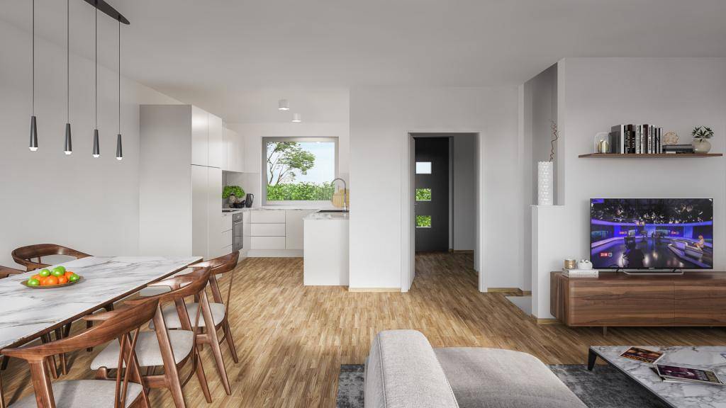EXKLUSIVE EINFAMILIENHÄUSER | ERSTBEZUG | TELEPHONWEG | PROVISIONSFREI Die kleine, exklusive Einfamilienhausanlage mit nur 7 Häusern entsteht in einer ruhigen Wohnlage am Stadtrand von Wien. Die einzelnen Häuser weisen Wohnflächen von ca. 140m² + ca. 53m² Keller auf 4 Ebenen auf und bieten moderne Grundrisse, helle Wohnräume, 4 sehr große Schlafzimmer, 2 Terrassen, traumhafte Eigengärten, eigene großzügige Kellerbereiche (ca. 53m²), hochwertige Ausstattungen sowie eine hervorragende Infrastruktur und hohen Freizeitwert zu attraktiven Preisen. Die Gebäude werden nach modernster Niedrigenergiebauweise erbaut und helfen Ihnen somit, Ihre Energiekosten langfristig im Griff zu halten. Eine höchst effiziente Luftwärmepumpe mit Kühlfunktion versorgt sowohl die Hauszentralheizanlage als auch die Warmwasser Aufbereitung in jedem Haus individuell. Diese Technologie ermöglicht kostengünstige Warmwasseraufbereitung und Kühlung ohne Schadstoffausstoß. Das Objekt entsteht am lebenswerten Stadtrand Wiens. Trotz absoluter Ruhelage hervorragende Infrastruktur und beste Anbindung an die Innenstadt. Der hohe Freizeitwert ist gegeben durch einige Badeteiche in unmittelbarer Nähe und perfekten Fahrradwegen. Trotz der gesuchten Grünruhelage sind Einkaufsmöglichkeiten wie der Gewerbepark Stadlau (Merkur, Hofer, Billa, Müller, u.v.m.) in Kürze zu erreichen. Auch Schulen, Kindergärten und Ärzte befinden sich in näherer Umgebung und runden somit die sehr gute Infrastruktur hervorragend ab. HOCHWERTIGE AUSSTATTUNG Ziegelmassivbau (auch Zwischenwände)Effiziente Luftwärmepumpe mit KühlfunktionFußbodenheizung in allen Etagen inkl. Keller3-fach verglaste Kunststoff/Alufenster (österreichische Markenqualität)Insektenschutz und elektrische RolllädenKelleretage ca. 53m²Elektroinstallationen komplett inkl. KellerSanitärinstallation komplettHauseigene Stellplätze (mit Leerverrohrung 380V vorbereitet)belagsfertige Übergabe (die auf den Bildern dargestellten Ausstattungsmerkmale gelten lediglich als Einrichtungsvorschlag) Haus 5, mit einer Wohnfläche von ca. 140m² + ca. 53m² Keller und einer Grundstücksfläche von ca. 284 m² besteht aus: Erdgeschoss: geräumiger VorraumWohnzimmer mit offener Küche: 42 m²WCGarten 159 m²Terrasse 15m² Obergeschoss: 3 Zimmer (12-15m²)Bad mit WC und Badewanne (optional Dusche) Dachgeschoss: Großes Schlafzimmer ca. 28m²Bad mit WC und Badewanne ca. 7m²Terrasse 13m² Keller: ca. 53m² Kaufpreis: € 569.000,- Aufschließungskosten: € 15.000,- Sie finden weitere Häuser dieses Projekts unter: projekte.immosan.at/21 Gerne steht Ihnen Herr Mag. Martin Leschinger - 0664 14 17 484 jederzeit für Fragen oder zur Vereinbarung eines Beratungsgesprächs zur Verfügung.