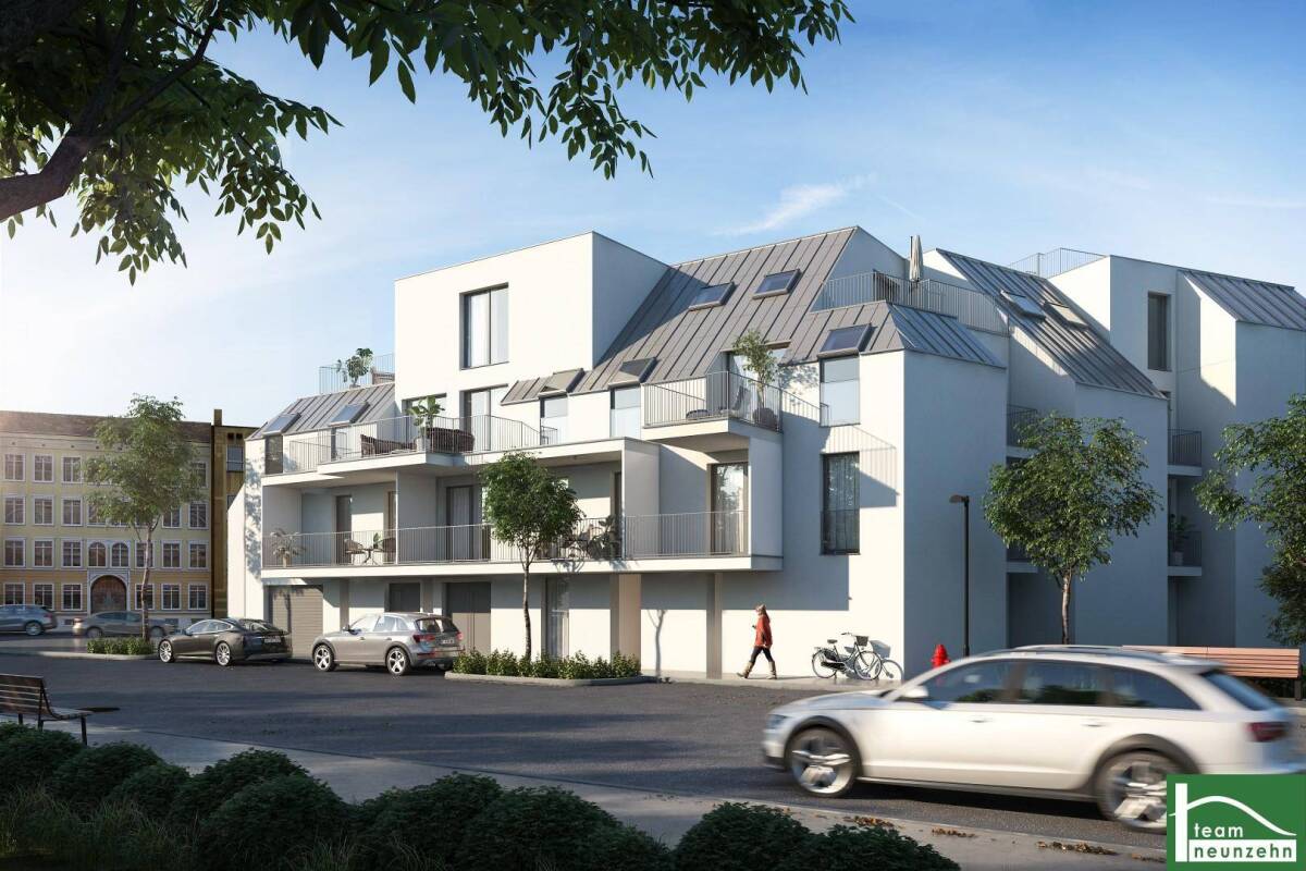 Ein Projekt mit Charisma in Aspern!Zwischen “Asperner See“ und oberes “Mühlwasser“ gelangen in einem top-modernen Neubau 26 hochwertige Wohnungen zum Verkauf. In idealer Anbindung befindet sich die U2 U-Bahn-Station Aspernstraße, mit welcher Sie in nur ca. 15 min. die Wiener Innenstadt bzw. Station Schottentor erreichen. Die Wohnhausanlage erschließt sich über zwei Regelgeschosse, sowie zwei Dachgeschosse. Die Wohnungen, aufgeteilt auf 3 Stiegenhäuser, haben Größen von 32m2 bis 84m2 (2-4 Zimmer) und verfügen jeweils über eine Freifläche (Garten, Balkon, Terrasse, Loggia).Weiteres stehen in der hauseigenen Tiefgarage 18 Stellplätze zum Verkauf.Aufgrund der tollen Wohnungsgrößen und Raumaufteilungen eignen sich die Wohnungen ideal für Endnutzer, als auch für Anleger.Die Fertigstellung ist bereits erfolgt.Der Neubau wird auf einem Eigengrund errichtet.Das Projekt zeichnet sich vor allem durch folgende Attribute aus:begehrte Lage im 22.Bezirkausgezeichnete InfrastrukturErstbezug in einem top-modernen Neubauhochwertige Ausstattungfunktionale Raumaufteilungen und Wohnungsgrößenalle Wohnungen verfügen über Freiflächen (Balkone, Terrassen)TiefgaragenplätzeAusstattungsstandard:Die Wohnungen werden in Stahlbetonbauweise ausgeführt und im schlüsselfertigen Zustand übergeben.Vollwärmeschutzfassade (geringer Heizwärmebedarf = geringe Heizkosten)LiftKellerabteileFahrradabstell- und KinderwagenraumFußbodenheizung (Zentralheizung über Gas betrieben + integrierte Raumthermostat zur individuellen Temperaturregelung)Vorbereitungen für eine Klimaanlage (in den DG-Wohnungen)Parkett Eichegroßformatige dunkle Bodenfliesen / helle Wandfliesen (in den Nassbereichen)hochwertige Kunststoff-Alu Fenster mit 3 ScheibenwärmeschutzverglasungInnentüren Weißhochwertige Sanitäreinrichtung - Fabrikat "Laufen", "Kludi" bzw. gleichwertigesWohnung Top 7: Stiege 2Die 4-Zimmer-Wohnung mit ca. 83 m² Wohnfläche sowie ca. 14 m² Balkon liegt im 1. Dachgeschoss und gliedert sich in folgende tolle Raumaufteilung:Vorraum ca. 6 m²separate Toilette ca. 2 m²Abstellraum ca. 3 m²Badezimmer mit Badewanne, WC und Handwaschbecken ca. 6 m²Wohnküche - ca. 27 m² - mit Balkonzugang1. Schlafzimmer ca. 14 m²2. Schlafzimmer ca. 11 m² - mit Balkonzugang3. Schlafzimmer ca. 11 m² - mit BalkonzugangBalkone ca. 14 m²Zudem ist ein Kellerabteil ebenfalls Teil der Wohnung.Kaufpreis:Die Wohnung kann als Anleger sowie auch als Endnutzer erworben werden.Der Endnutzerpreis beläuft sich auf 425.000,- Euro. Der Kaufpreis für Anleger beträgt 386.363,64 Euro zzgl. 20% USt.PKW Abstellplätze können jeweils für den Endnutzer um 20.000, - Euro, für den Anleger um 18.181,81 Euro zzgl. USt erworben werden.In der unmittelbaren Umgebung befinden sich:• Einkaufsmöglichkeiten:Billa, Hofer, Donauzentrum (8 min. mit dem Auto entfernt)• Ärzte und Apotheken:Sozialmedizinisches Zentrum Ost, MED22, Apotheke U2 Stadlau• Banken:Raiffeisenlandesbank, Bawag PSK• Schulen bzw. Weiterbildung:Modulare Mittelschule Aspern, VHS Donaustadt, Löwenschule, Wiener Kindergarten – MA 10Tolle öffentliche Verkehrsanbindung:U2 – Aspernstraße (ca. 8 min. zu Fuß)Buslinien:26A, 93A und 98A am Bahnhof (ca. 120m Gehweg)Straßenbahnlinie:25 Aspern - Oberdorfstraße (ca. 350m Gehweg)Energieausweis:Der Heizwärmebedarf beträgt 37,20, welcher der Klasse B entspricht.Für Fragen bzw. Besichtigungen steht Ihnen Herr Ihsan Poyraz sehr gerne unter 0699 198 00 00 8 zur Verfügung.Dienstleistung der teamneunzehn – Gruppe für Anleger:Sie möchten nach Erwerb der Immobilie mit der Vermietung sowie den Mietabrechnungen und eventuellen Fragen während des Mietverhältnisses nicht beschäftigt sein? So steht Ihnen unser Team mit einem tollen Dienstleistungskonzept für Anleger zur Verfügung. Gerne übermitteln wir Ihnen bei Bedarf die Unterlagen hierfür.Sie suchen nach einer passenden Finanzierung für dieses Objekt?Um Ihnen auch hier Zeit und Geld zu sparen, stehen wir Ihnen mit unserem hausinternen Finanzierungsservice zur Seite! Nehmen Sie Kontakt mit unseren Finanzierungsprofis auf, um sich einen Termin für ein unverbindliches und kostenloses Beratungsgespräch zu vereinbaren. Unsere Berater werden sich Ihrem Anliegen verlässlich und professionell annehmen und den Markt für Sie sondieren, sodass Sie direkt zum optimalen Kreditangebot gelangen ohne kostbare Zeit und Mühen für unzählige Banktermine aufwenden zu müssen.„Leben braucht Raum“ – teamneunzehn.at Immobilienmanagement GmbH & Co. KGwww.teamneunzehn.atWir weisen ausdrücklich auf unser wirtschaftliches Naheverhältnis mit dem Abgeber/der Abgeberin hin! Irrtümer und Änderungen vorbehalten! Die angeführten Bilder sind Visualisierungen. Abänderungen zur tatsächlichen Ausführung können resultieren. Die auf den Bildern ersichtlichen Einrichtungsgegenstände und Accessoires werden nicht mitverkauftTOP MODERNER NEUBAU - ERSTBEZUG - EIN PROJEKT MIT CHARISMA IN ASPERN - NÄHE U2 ASPERNSTRAßE & ASPERNER SEE!!!Infrastruktur / EntfernungenGesundheit Arzt <500m Apotheke <1.000m Klinik <7.500m Krankenhaus <1.500m Kinder & Schulen Schule <500m Kindergarten <500m Universität <2.500m Höhere Schule <5.000m Nahversorgung Supermarkt <500m Bäckerei <500m Einkaufszentrum <3.500m Sonstige Bank <500m Geldautomat <500m Post <1.000m Polizei <500m Verkehr Bus <500m U-Bahn <1.000m Straßenbahn <500m Bahnhof <1.000m Autobahnanschluss <2.500m Angaben Entfernung Luftlinie / Quelle: OpenStreetMap