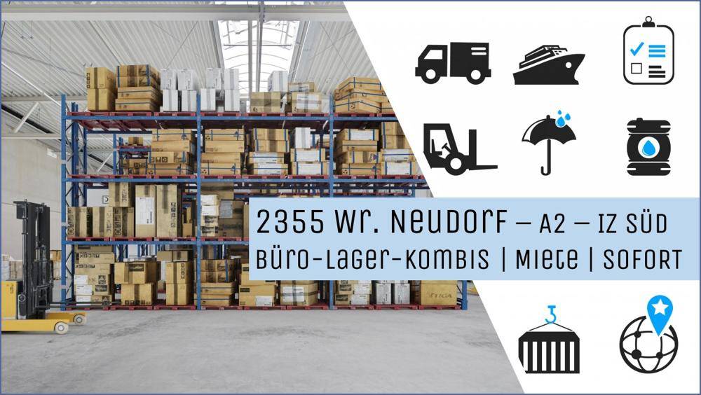 2351 Wiener Neudorf - IZ SÜD - A2 • > BÜRO-LAGER-KOMBINATIONEN • >> Für jede Größe • >> Für jeden Zweck • >> 7/24 Betrieb möglich • >> Zufahrt, auch für LKW, rund um die Uhr möglich. • >> Großzügige Verkehrswege und Freiflächen • >> LKW kann direkt zur Mieteinheit fahren ->> Ausreichend PKW Plätze auf dem Areal