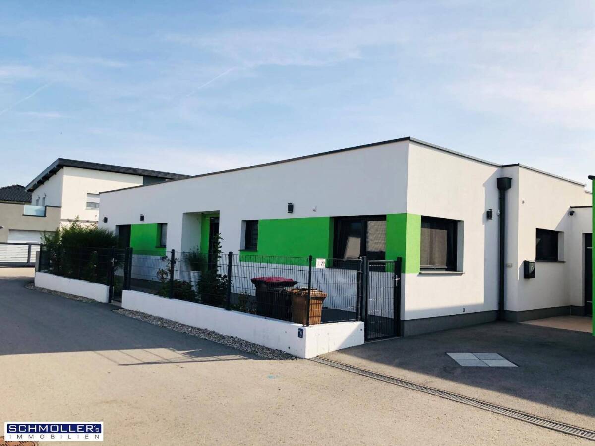 Schmöller`s-Immobilien, Jürgen Schneeweis, +43 676 433 29 59 js@schmoellers.at www.schmoellers.atDieser neuwertige, barrierefreie Bungalow aus dem Jahr 2016, mit sehr durchdachter und geplanter Architektur der Eigentümer und letztendlich von der renommierten Firma Wimberger Haus fertiggestellt, befindet sich in einer noch sehr jungen Wohnsiedlung in Marchtrenk/Au an der Traun. Die mehr als 14.000 Einwohner zählende Stadt deckt mit ihren Einrichtungen den Bedarf des täglichen Lebens ab; Lebensmittelmärkte, Bäcker, Fleischer, Apotheke, Ärzte etc., sowie mehrere gastronomische Betriebe, ebenso Kindergärten und Krabbelstube, eine Volks- und Mittelschule. In Ihrer Umgebung befinden sich öffentliche Verkehrsmittel wie Bus und Bahn. Innerhalb 2km erreichen sie die Stadtgemeinde Marchtrenk. Den historischen Stadtplatz in Wels erreichen sie in rund 10km. Die nächstgelegene Autobahnauffahrt befindet sich in unmittelbarer Nähe.Schmöller`s-Immobilien, Jürgen Schneeweis, +43 676 433 29 59 js@schmoellers.at www.schmoellers.atDurch den geräumigen Vorraum gelangen Sie in den großzügigen und lichtdurchfluteten Wohn/Essbereich. Eine wunderschöne offene Einbauküche mit ordentlicher Ausstattung lässt keine Wünsche offen und wird jeden Hobbykoch sofort begeistern. Im Anschluss der Küche befindet sich noch ein angrenzender Speise bzw. Lagerraum. Außergewöhnlich viel Platz bietet auch noch der Essbereich und das sehr gemütliche Wohnzimmer. Hier werden sie sich so richtig wohlfühlen und genießen puren Luxus in punkto Großzügigkeit.Die Liegenschaft verfügt des weiteren auch noch über 2 Kinderzimmer (eines mit Ausgang in den Garten) ein Schlafzimmer und ein Büro. Das ebenso barrierefreie Badezimmer ist mit einer Glasdusche inkl. Badewanne und einer Toilette ausgestattet. Zuzüglich steht ihnen auch noch ein getrenntes Gäste WC zur Verfügung. Im Vorhaus befindet sich auch der direkte Zugang zur beheizbaren Doppelgarage. Im Anschluss erreichen sie noch eine Werkstatt bzw. Hobbyraum der auch noch einiges an Platz anzubieten hat. In diesem Raum wäre auch noch die Möglichkeit eine weitere Dusche oder WC zu installieren.Schmöller`s-Immobilien, Jürgen Schneeweis, +43 676 433 29 59 js@schmoellers.at www.schmoellers.atDas Haus verfügt vom Innenbereich über mehrere Zugangsmöglichkeiten zum relativ wartungsfreundlichen Garten in der sich 2 verfügbare Terrassen befinden. Mit der optimalen Südausrichtung genießen sie die Sonnenstrahlen bis spät abends. Ein wundervoller Pool verfeinert noch das Sommerambiente und sorgt für zusätzliches Urlaubsfeeling. Ein ca.17m2 isoliertes Nebengebäude der als Kellerersatz dient bietet reichlich Platz für ihre Gartengeräte und vervollständigt dieses lukrative Angebot.Was man noch wissen sollte!• KLIMABLOC 25 VZ PLAN ZIEGEL - 25cm und 18cm EPS PLUS VWS - F0,031W/mK• COMFORT-VENT® G 90-380 Luxe Wohnungslüftungsgerät mit Wärme- und optionaler FeuchterückgewinnungWärmerückgewinnung Die Wärmerückgewinnung erfolgt durch den eingebauten, großzügig dimensionierten Luft/Luft-Gegenstromplattentauscher aus recycelbarem Kunststoff mit Wärmebereitstellungsgraden je nach Prüfverfahren bis zu 88%.Feuchterückgewinnung Durch den optional lieferbaren, neu entwickelten Entalphitauscher kann ein großer Teil der Luftfeuchtigkeit aus der Abluft zurückgewonnen werden. Die Konstruktion als Plattentauscher mit getrenntem Zu- und Abluftvolumenstrom gewährleistet einen auch langfristig hygienisch einwandfreien Betrieb. Das Verfahren unterscheidet sich damit grundsätzlich von den ebenfalls zur Feuchtigkeitsrückgewinnung eingesetzten Geräten mit beschichteten Rotationstauscher oder Geräten mit Umluftbetrieb. Ein zusätzlicher Vorteil ist der Einfrierschutz des Entalphitauscher ohne Luftvorwärmung durch einen Erdwärmetauscher oder ein Vorheizregister bei einer Außenlufttemperatur bis ca. -12°C bei ausgeglichenen Volumenströmen.• FRONIUS Symo Hybrid 5.0-3-S Solar-Speicherwechselrichter 5,5 kW PV-Anlage. Jahresproduktion an Strom ca. 6200 kWhFronius SYMO Hybrid 5.0-3-S ist aktuell ein Solarwechselrichter, Nachrüstoption mit einer Fronius Batterie zum Speicher Wechselrichter mit Notstrom-Funktion möglich• VAILLANT flexoCompact VWF88/4 - Grundwasserwärmepumpe mit eigenem SchachtbrunnenVorlauftemperaturen bis 65°C für Modernisierung185 Liter Warmwasser-Edelstahlspeicher integriertNaturalCooling Modul für passive Kühlung über FußbodenheizungSound-Safe-System für besonders leisen BetriebEinfache Einbringung durch SplitMountingConceptFluoCOLLECT Edelstahl-WärmetauscherSerienmäßig integrierter Wärmemengenzähler und StromzählerHocheffizienz-Pumpen in Heizungs- und Solekreislauf10 Jahre Kompressor-Materialgarantie3 Jahre Wärmegarantie-plus - Paket für Komfort und Sicherheit auf höchstem Niveau.Geräteaktivierung durch den Vaillant Werkskundendienst inkludiert.Garantierter „vor Ort Servicetermin” innerhalb von 24 StundenMultiMATIC App für weltweite Heizungsregelung• LOXONE Smart HomeBeschattung: Beschattung einzeln, in Gruppen oder auch ganz automatisch steuerbar.Beleuchtung: Farblicht, Lichtszenen, Dimmen, u.v.m. Perfekte Lichtstimmung mit der Lichtsteuerung von Loxone. Die Loxone App ermöglicht den Zugriff auf die Beleuchtung, Beschattung, Pool usw.• INTERNORM KF410 - Sicherheit 3-fach VSG Alu-Kunststofffenster (Schalldämmend 40DB)• LIWEST GlasfaseranschlussInkl. Modem / RouterNetzwerkverkabelung im ganzen HausNetzwerk- sowie TV-Anschlüsse: 2 x im Wohnzimmer, 1 x im Schlafzimmer, je 1 x in den Kinderzimmern, 1 x im Büro, 1 x in GarageEigene Sattelitenanlage am Dach mit 8-fach Multiswitch = 8 TV-Anschlüsse gleichzeitig möglich• BELEUCHTUNGWohnzimmer 8 Beleuchtungskreise für verschiedene BeleuchtungsszenarienKüche und Esszimmer Beleuchtung dimmbarGangbereiche indirekte Beleuchtung über Bewegungsmelder sowie HauptlichtSchlafzimmer und Kinderzimmer: Beleuchtung dimmbarBadezimmer: 4 Beleuchtungskreise für versch