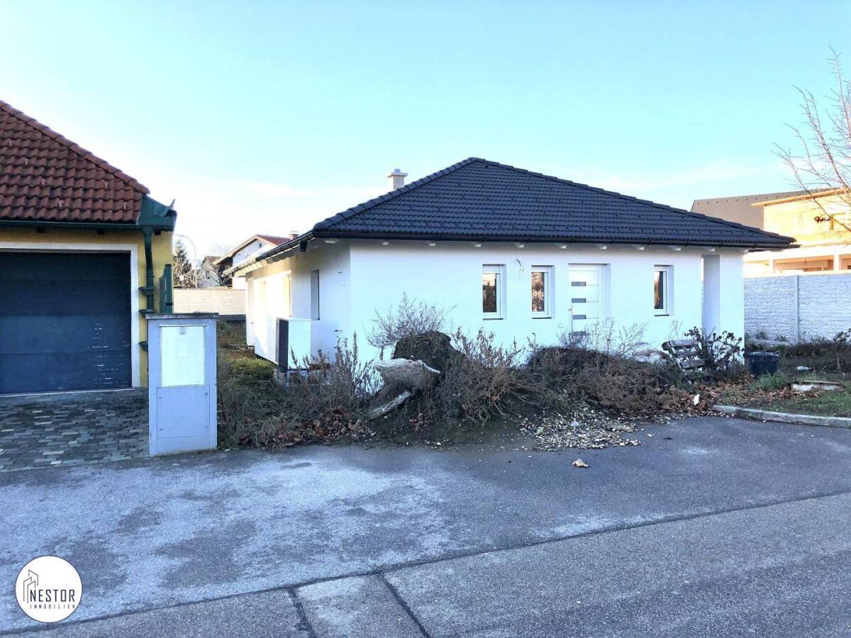 ACHTUNG! TOP Bungalow in schöner Lage inkl. Grundstück - Schwadorf bei Wien!----------------------------------------- www.immonestor.at - Weitere ähnliche Objekte finden Sie auf unserer Homepage! -----------------------------------------Diese Einfamilienhaus befindet sich auf einem ca. 678 m² großen Grundstück und wurde im Jahr ca. 2019 errichtet. Das Haus besteht aus einer Etage.Erdgeschoss (ca. 100 m²): • Wohnküche • Gang • 3 Zimmer • Bad • Getrenntes WC• Eine Genehmigung für 2 Gartenhütten und 2 Carports ist vorhanden • Massivbau • Fußbodenheizung • Ein Kamin ist möglich • Möblierung: Einbauküche • 3fach verglaste Fenster mit RollosDas schöne und neue Bungalow ist noch nicht zu 100% fertiggestellt. Es fehlen noch Kleinigkeiten. Laut Besitzer müsste man noch Investitionen (Türen innen, Fliesen etc.) tätigen. Die Einbauküche ist schon fertig verbaut siehe Fotos. Ein riesiger und schöner Garten (Eigengrund) steht zur Verfügung (Himmelsrichtung - Westen) . Somit steht im Sommer nichts für eine tolle Grillparty im Wege. Das Grundstück ist mit einer schönen und modernen Mauer abgetrennt die für eine tolle und ruhige Atmosphäre sorgt. Ein Keller ist nicht vorhanden. Für den Winter ist ein Kaminanschluss vorhanden. Außerdem wurden 2 Carbort Stellplätze und 2 Gartenhütten Plätze von der Gemeinde genehmigt. Strom vorhanden aber noch nicht angeschlossen. Fenster 3 Fach Verglasung. Beheizt wird das Haus mit einer Fußbodenheizung (Luftwärmepumpe)Auf Anfrage genaueres sowie Besichtigung!Diese Immobilie befindet sich in einer guten Infrastruktur sowie Verkehrsanbindung. Alle Nahversorger befinden sich in der Nähe.WIR FREUEN UNS ÜBER IHRE MAIL ANFRAGE!Alle Informationen und Besichtigungen ohne Abschluss eines Kaufvertrages sind unverbindlich und kostenlos.INVESTIEREN statt SPEKULIEREN!BITTE BEACHTEN SIE, DASS WIR AUFGRUND DER NACHWEISPFLICHT GEGENÜBER DEM EIGENTÜMER NUR ANFRAGEN MIT VOLLSTÄNDIGER ANGABE DER ANSCHRIFT UND ANGABEN ZUR PERSON (NAME, TELEFON, EMAIL) BEARBEITEN KÖNNEN.Auf E-Mail Anfrage lassen wir Ihnen gerne mehr Informationen zukommen. Für weitere Auskünfte wenden Sie sich an:Herr Aleksandar Biorac Tel.: +43 650 / 323 36 30 E-Mail: bio@immonestor.at Wagramerstraße 102, 1220 Wien www.immonestor.atHinweis gemäß Energieausweisvorlagegesetz: Ein Energieausweis wurde vom Eigentümer bzw. Verkäufer, nach unserer Aufklärung über die ab 1.12.2012 geltende generelle Vorlagepflicht, sowie Aufforderung zu seiner Erstellung noch nicht vorgelegt. Daher gilt zumindest eine dem Alter und der Art des Gebäudes entsprechende Gesamtenergieeffizienz als vereinbart. Wir übernehmen keinerlei Gewähr oder Haftung für die tatsächliche Energieeffizienz der angebotenen Immobilie.Infrastruktur / EntfernungenGesundheit Apotheke <2.500m Arzt <7.500m Krankenhaus <5.500m Kinder & Schulen Schule <500m Kindergarten <5.000m Nahversorgung Supermarkt <1.000m Bäckerei <2.500m Einkaufszentrum <10.000m Sonstige Bank <500m Post <1.000m Geldautomat <500m Polizei <5.500m Verkehr Bus <500m Autobahnanschluss <6.000m Bahnhof <5.500m Flughafen <4.000m Angaben Entfernung Luftlinie / Quelle: OpenStreetMap