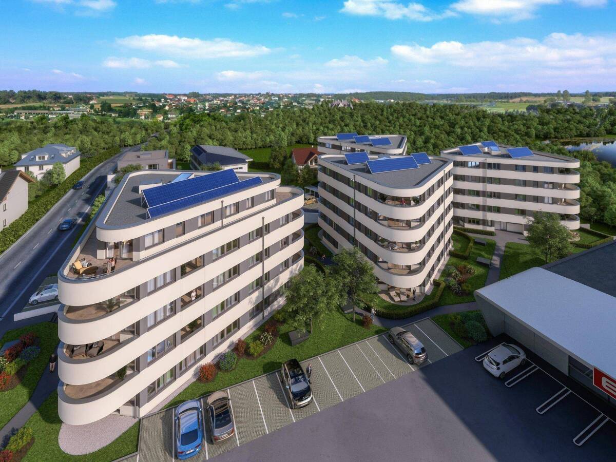 Die Wohnung befindet sich aus Richtung Stadtzentrum Gmunden kommend nahe des Kreisverkehrs Scharnsteinerstraße/Cumberlandstraße, angrenzend an den Eurospar. Die Dreiecksform des Wohnhauses mit 5 Geschoßen ergibt ein sehr kompaktes innenliegendes Stiegenhaus samt Lift, wodurch die barrierefreie Erschließbarkeit gewährleistet ist. Die Wohnung mit 73,46 m² Wohnfläche und 12,28 m² Balkon bietet im 1. Stock freie Sicht von Ost bis West, im Süden auf Grünberg und den Gipfel des Traunstein. Der Wohnung steht ein Kellerabteil und ein Abstellplatz in der Tiefgarage zur Verfügung, oberirdische Besucherparkplätze sind vorhanden. Im Allgemeinbereich befinden sich Kinderspielbereiche mit Spielgeräten und Sandkiste, sowie Sitzbänke und die Wäschespinnen. Im Nahbereich der Hauseingänge sind oberirdisch Fahrradabstellplätze und zusätzlich noch Fahrrad-Räume im Kellergeschoß, vorgesehen. Die Wohnanlage wird als Niedrigst-Energiehaus mit kontrollierter Wohnraumlüftung sowie Fußbodenheizung (Gasheizung mit Raumthermostat) mit Solaranlage errichtet. Bis auf die Balkontüren/Fenster verfügen alle Fenster über elektrische Raffstores. Anschlüsse für Telefon/Internet/Kabel-TV sind vorbereitet. Der Erstbezug ist ab April/Mai 2021 möglich, die Mietkosten betragen 950 €, die monatlichen Betriebskosten belaufen sich auf ca. 227 € (exkl. Heizung, Strom, Telefon und Internet), Abrechnung über die Wohnbaugenossenschaft.