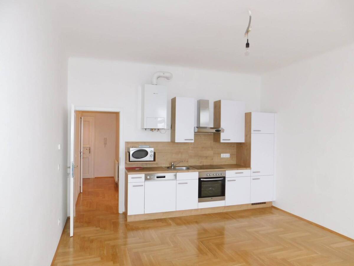 Perfekte Single Wohnung in 1200 Wien - saniertZur Vermietung gelangt eine generalsanierte ca. 34 m2 große Wohnung in Nähe Dresdner Strasse, 1200 Wien. Die Wohnung teilt sich auf in Wohnraum mit offener Küche, ein Duschbad, ein separates WC und einen Vorraum, von dem alle Räume separat begehbar sind. Weiters ist der Wohnung ein Abstellraum auf Geschoßebene zugeordnet, welcher das Kellerabteil ersetzt. Die Wohnung ist sehr hell und befindet sich im 4. Liftstock.In den Wohnräumen ist Parkett verlegt, die Nassräume sind mit Feinsteinzeug ausgelegt. Die moderne Küche umfasst alle Geräte wie Kühlschrank, Geschirrspüler, Herd und Mikrowelle. Die Wohnung besitzt eine Gaszentralheizung, im Badezimmer befindet sich eine bodenebene Dusche und eine Waschmaschine. Im Haus steht eine weitere gleichwertige Wohnung zur Vermietung.Die Wohnung hat eine ausgezeichnete Infrastruktur und liegt verkehrsgünstig in der Nähe zur U6, Straßenbahnen 2 und 5 sowie Bussen.Bitte beachten Sie, dass wir aufgrund unserer Nachweispflicht ausschließlich Anfragen unter Angabe Ihrer vollständigen Daten bearbeiten können (Name, Anschrift, E-Mail Adresse). Bitte haben Sie auch dafür Verständnis, dass wir Ihnen seit 13.6.2014 aufgrund einer neuen EU-Richtlinie Unterlagen zu unseren Objekten erst dann zuschicken können, wenn Sie bestätigen, dass Sie unser sofortiges Tätigwerden wünschen und über Ihre Rücktrittsrechte aufgeklärt wurden. Sie bekommen nach Ihrer Anfrage ein Mail, in dem Sie diese Punkte bestätigen müssen. Danke!Infrastruktur / EntfernungenGesundheit Arzt <1.000m Apotheke <500m Krankenhaus <1.000m Klinik <1.500m Kinder & Schulen Schule <500m Kindergarten <500m Universität <1.500m Höhere Schule <1.500m Nahversorgung Supermarkt <500m Bäckerei <500m Einkaufszentrum <1.500m Sonstige Bank <500m Geldautomat <500m Post <500m Polizei <1.000m Verkehr Bus <500m Straßenbahn <500m U-Bahn <1.000m Bahnhof <1.000m Autobahnanschluss <2.000m Angaben Entfernung Luftlinie / Quelle: OpenStreetMap