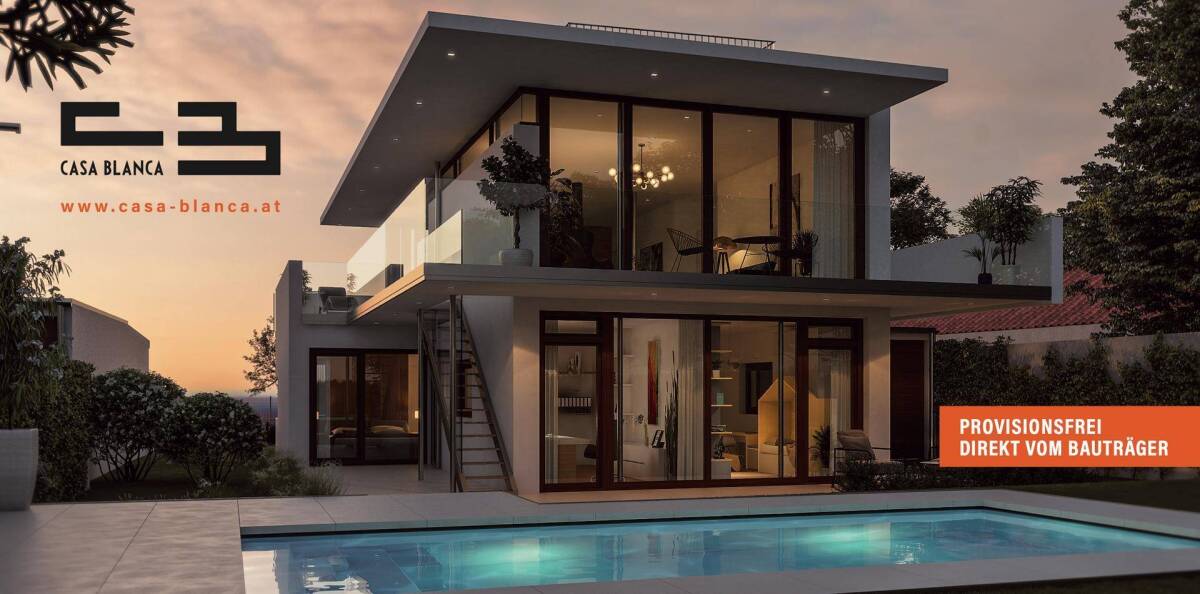 Direkt am Fuße der idyllischen Etsdorfer-Kellergasse in der Marktgemeinde Grafenegg realisiert die MAFOS real estate GmbH ein exklusives Immobilienprojekt für urbane Freigeister und anspruchsvolle Genießer. Inmitten von grünen Weingärten entstehen unweit der weltberühmten Architekturikone HAUS WITTMANN die strahlend weißen Zwillingshäuser DON FRANCESCO und DON GIOVANNI. Luftigkeit, Freiheit, Helligkeit und eine klare, durchgängige Formensprache dominieren die architektonische Gestaltung der beiden Einfamilienhäuser DON FRANCESCO und DON GIOVANNI, welche – inspiriert vom 100. Geburtstag des Möbelfabrikanten Franz Wittmann und des Architekten Johannes Spalt – interdisziplinäres Denken, größtmögliche Flexibilität und innovative Materialqualität auf stilvolle Weise nützen. Klare Linien, lichtdurchflutete Räume, großzügige Außenflächen sowie traumhafte Fernblicke schaffen einen luftig-leichten Sehnsuchtsort, welcher konstruktive Schönheit und kultivierten Lebensstil perfekt vereint. Den kommunikativen Mittelpunkt im Obergeschoss bildet jeweils ein geräumiger Wohn- und Essbereich mit offener Küche, bei dem Kochen, Essen, Arbeiten, Spielen, Lesen und Fernsehen fließend ineinander übergehen. Zu den absoluten Highlights zählen außerdem der beheizbare Pool von Leidenfrost und die über eine Nebenstiege von außen begehbare Dachterrasse, die mit einem fantastischen 360 Grad Panoramablick über die inspirierende Landschaft des Kamptals und des Wagrams zum Relaxen, Staunen und Innehalten einlädt. Link zur Homepage: https://www.casa-blanca.at
