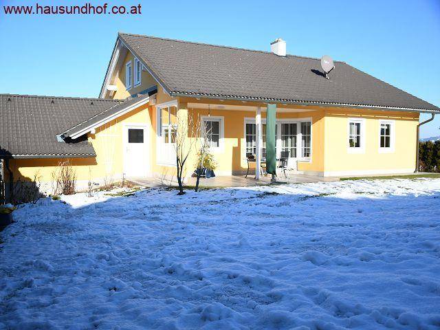 Hier heißt es: "Koffer packen und einziehen! " Am Rande einer Siedlungslage mit schönem Fernblick befindet sich diese ausgesprochen gepflegte, vollunterkellerte Liegenschaft. Das Haus wurde 2000 erbaut. Es verfügt über drei Garagen und einen riesigen Carport, welches für das Wohnmobil dient. Ebenerdig und auch durch die Garagen gelang man ins Kellergeschoss, welches mit einem Vorraum, einem großen Büro, einem WC, Heizraum und Waschküche, sowie einem Vorratskellerraum ausgestattet ist. Über die Stiege vom Vorraum, über die Garagen, sowie auch außen über den Haupteingang gelangt man in das Erdgeschoss. Dort erwartet sie ein Vorraum mit einem Kachelofen, welcher auch gleichzeitig den Wohnbereich beheizt, ein großer Küchen-Ess-Wohnbereich mit Ausgang auf die überdachte, südlich ausgerichtete Terrasse, welche eine Fläche von ca. 30 m² bietet. Die Küche lässt sich mit einer praktischen, integrierten Schiebetür trennen. Weiters stehen drei Schlafzimmer, ein WC, Speisekammer, ein Badezimmer mit Dusche und Badewanne zur Verfügung, welches keine Wünsche offen lässt. Im teilweise vorbereiteten Dachgeschoss, laden noch weitere ca.70m² zum Ausbauen ein, sowie auch im Erdgeschoss noch weitere Zimmer über den Garagen möglich sind. Das Haus wird mit einer Ölzentralheizung beheizt, Die Heizkosten inklusive Warmwasseraufbereitung betragen derzeit ca. EUR 1.800,-- jährlich, die Abgaben an die Gemeinde betragen derzeit ca. EUR 150,-- pro Quartal. Ein absolutes Highlight sind die großen Garagen und der große Raum über der Garage, welcher direkt in den Garten führt und Platz und Stauraum für Gartengeräte bietet. Der große Carport und die PKW Abstellplätze vor den Garagen. Das Haus wird vollmöbeliert übergeben!