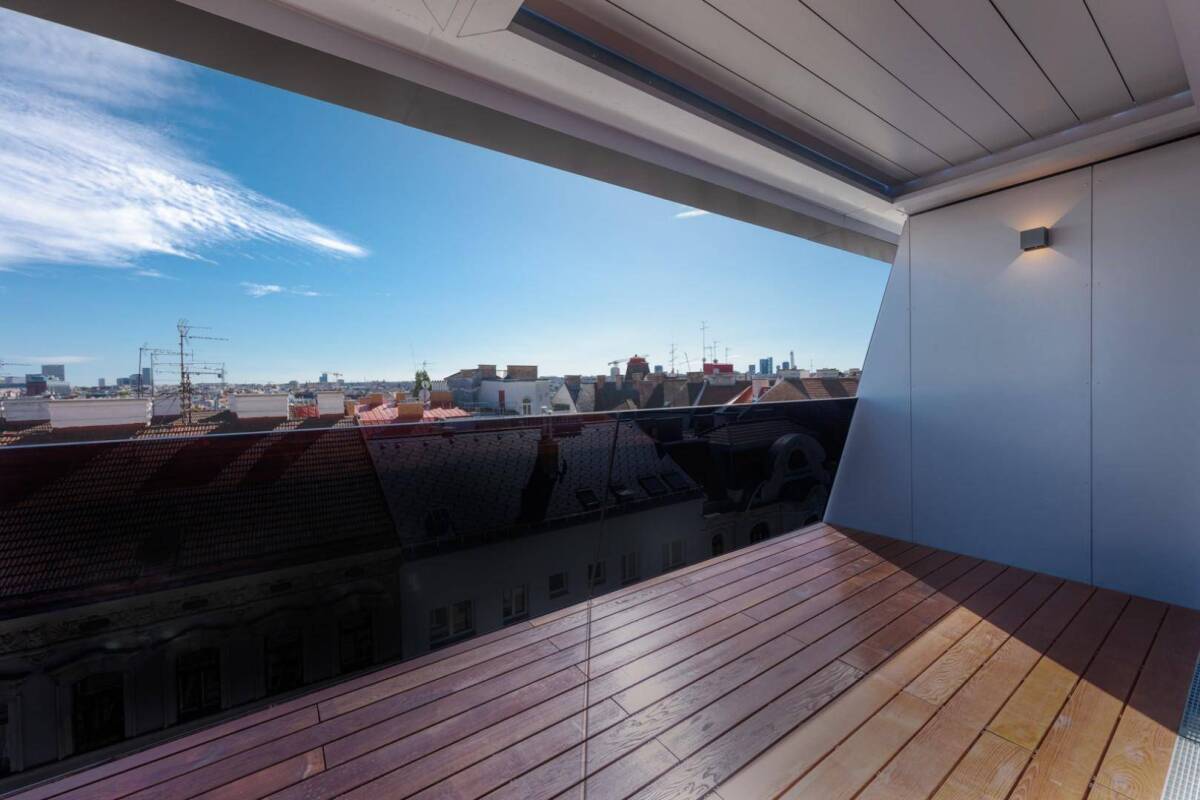 THE FLAT IRON VIENNA - Contemporary LivingDAS PROJEKTIm Herzen Mariahilfs, eingebettet zwischen Naschmarkt und Mariahilfer Straße, wurden in einer einzigartigen Jahrhundertwendeliegenschaft zehn luxuriöse Stilaltbauwohnungen generalsaniert sowie zwei herausragende Dachwohnungen (128 und 131 qm zzgl. Außenflächen) ohne störende Schrägen und mit fantastischen Raumhöhen errichtet.Das „Flatiron Vienna“, erbaut 1890 vom Wiener Stadtbaumeister Georg Löwitsch, erinnert auf den ersten Blick an das spitz zulaufende Flatiron-Building (Bügeleisengebäude) in New York – einem der berühmtesten Wahrzeichen Manhattans. Diese Assoziation wurde im Namen aufgegriffen – eine Hommage an die New Yorker Ikone aus dem Jahr 1902.Bei der behutsamen Revitalisierung des stilvollen Gründerzeithauses aus dem 19. Jahrhundert wurde besonderer Wert auf die Bewahrung der historischen Raffinessen im Einklang mit zeitgemäßem Design und den Annehmlichkeiten modernen Wohnens gelegt.Besuchen Sie auch unsere Projektseite flatiron.at!DAS DACHGESCHOSSDen krönenden Abschluss bilden zwei außergewöhnliche und unvergleichliche Wohneinheiten.Im Dachgeschoß des Flatiron Vienna eröffnet sich ein super Blick über die Dächer der Stadt. Terrassen und Loggien laden dazu ein, das Leben nach draußen zu verlagern und die wunderbare Aussicht in vollen Zügen zu genießen. Die hochmodernen, raumhohen Panorama-Schiebeverglasungen im minimalistischen Design bieten dank filigranster Alu-Einfassung höchste Transparenz bei gleichzeitig exzellentem Komfort. Auf Knopfdruck elektrisch öffenbar, lässt sie Innen- und Außenbereich optisch ineinanderfließen. Fußbodenheizung, Klimaanlage und Beschattung sind über ein Smart-Home-System der Marke Button steuerbar und sorgen im Sommer für angenehme Temperaturen. Großzügig geschnittene Räume, eine klare Formensprache und die Verwendung hochwertiger und exklusiver Materialien prägen die Atmosphäre und das Gefühl der Weite im Dachgeschoß.Drei wesentliche Faktoren die diese Einheiten von anderen Objekten im Dachgeschoß wesentlich unterscheiden: die nahezu nicht vorhanden und nur dezent angedeuteten Schrägen, ein hohes Maß an Privatsphäre sowie wunderbare Raumhöhen auf der zweiten Ebene in den loftartigen Wohnküchen. Eine grandiose Kombination, die ein perfektes Wohn- und Raumgefühl gewährleisten.DIE LAGEDie Infrastruktur und Nahversorgung sind als exzellent zu bewerten. Das lebendige Grätzl rund um die Magdalenenstraße spiegelt den Lifestyle einer pulsierenden Metropole wider. Von hippen Cafés und kreativen Restaurants, über Theater und Kunstgalerien bis zu Vintage-Shops, findet sich alles in Fußgehreichweite. Der traditionsreiche Naschmarkt mit seinen vielfältigen Marktständen und teilweise ganzjährigen Schanigärten lädt zum gemütlichen Verweilen ein. Mehrere Kindergärten und Schulen sind ebenfalls bequem erreichbar.Nur wenige Schritte von der Liegenschaft entfernten befinden sich die Buslinien 13A, 14A (Station Magdalenenstraße) und 57A (Station Esterhazygasse), die stadteinwärts direkt zu Wiens größter Einkaufsstraße, der Mariahilfer Straße, sowie weiter zu Museumsquartier, Ring und Altem AKH führen. Die Anknüpfung an das U-Bahn-Netz erfolgt über die nahe gelegene U4-Station Kettenbrückengasse sowie die U3-Station Neubaugasse.WOHNUNGSBESCHREIBUNG TOP 15Diese Einheit wurde als Maisonette über zwei Ebenen errichtet und verfügt über eine Wohnnutzfläche von ca. 130 qm zzgl. einer Loggia von ca. 17,3 qm.Auf der ersten Dachgeschoßebene (6. Liftstock) befinden sich zwei großzügige Schlafzimmer (ca. 17 und 20 qm), ein Badezimmer mit Walk-In-Dusche, Badewanne und Doppelwaschbecken (ca. 9 qm), der mit natürlichem Licht geflutete, zentrale Vorraum (17 qm) sowie zwei Abstellräume und ein separates WC.Über eine komfortable Innentreppe gelangt man auf die zweite Ebene, wo sich die loftartige Wohnküche im Ausmaß von ca. 54 qm, die direkt begehbare Loggia (ca. 20,6 qm) sowie ein großzügiges WC befinden.Die Wohnung ist sowohl nach Osten als auch Westen orientiert und bietet somit wohltuende Sonne am Morgen, nachmittags und abends. Nach Osten blickt man über die Dächer der Stadt Richtung Wienerberg, nach Westen wandert das Auge über eine spannende Dach- und Himmellandschaft Richtung Mariahilfer Straße.Eine wunderbare Wohnung, die keine Wünsche offen lässt!DIE AUSSTATTUNGS-HIGHLIGHTSGroße Glasflächen für Licht & OffenheitState of the Art: Design-Schiebeglas mit minimalistischen Rahmenelementenfunkgesteuerte AußenbeschattungSmart-Home-System von ButtonFußbodenheizung & Klimaanlageexklusiver Eichen-Dielenbodenexklusive Design-Ausstattung im Bad aus dem Hause Dornbracht und Laufenkeine störenden SchrägenRaumhöhen von bis zu 3,1 m in der WohnkücheMit der Wohnungseigentumsbegründung, Kaufvertragserrichtung, treuhändigen Abwicklung und grundbücherlichen Durchführung ist die Rechtsanwaltskanzlei Pressl & Feitsch in 1030 Wien, Hetzgasse 45 beauftragt. Die Gesamtkosten für die angeführten Dienstleistungen belaufen sich auf 1,5% zzgl. Umsatzsteuer. Hinzu kommen die Beglaubigungskosten für die Unterschriften.Dieses Objekt wird Ihnen unverbindlich und freibleibend zum Kauf angeboten. Oben angeführte Angaben basieren auf Informationen und Unterlagen des Eigentümers und sind unsererseits ohne Gewähr. Als Vermittlungshonorar gelten die allgemeinen Geschäftsbedingungen und die Verordnung für Immobilienmakler des BM für Handel, Gewerbe und Industrie, BGBL. 297/1996. Für den Fall, dass es diesbezüglich zu einem entsprechenden Rechtsgeschäft kommt, verrechnen wir Ihnen eine Vermittlungsprovision von 3 Prozent der Kaufsumme zuzüglich der gesetzlichen Mehrwertsteuer. Wir möchten noch darauf hinweisen, dass wir in einem wirtschaftlichen Naheverhältnis zur Verkäuferin stehen.Wir weisen darauf hin, dass zwischen dem Vermittler und dem Auftraggeber ein wirtschaftliches Naheverhältnis besteht. Der Vermittler ist als Doppelmakler tä