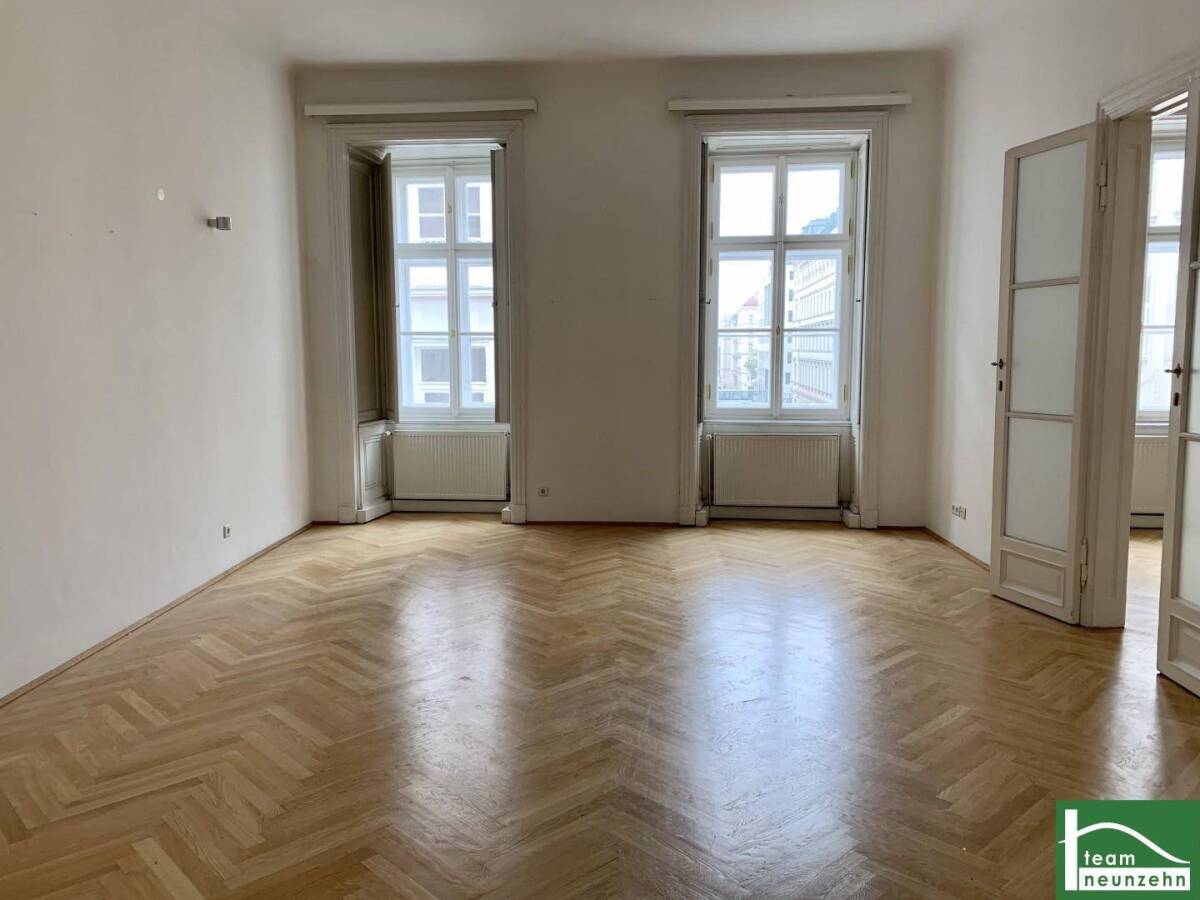 Diese einladende Altbauwohnung im 1. Bezirk liegt im 3. Stock. Der sympathische Altbau in der Krugerstraße wird Sie mit seiner zentralen Lage begeistern. Sie finden hier ein Objekt, welches mit einem tollen Lichthof durch die Wohnung ausgestattet ist.Die ca. 176qm sind mit einem hochwertigen Parkett ausgelegt und aufgrund der Raumaufteilung ebenso als WG geeignet.Wohnung:Die ca. 176 qm Wohnung in der Innenstadt teilt sich wie folgt auf:Vorzimmer1 separates BadezimmerMasterbedroom mit extra BadezimmerKüche 4 ZimmerDas Vorzimmer befindet sich um den Lichthof angeordnet. Es besteht die Möglichkeit, um den Lichthof rundum zu gehen.Ausstattung:zentrale Lage EinbaukücheWG-GeeignetParkettbodenLiftInfrastruktur: Diese Traumlage erfüllt Ihnen alle Wünsche. Nahversorgungs- und Einkaufsmöglichkeiten sind direkt vor der Türe. Die Kärntnerstraße befindet sich nur einen Block weiter. Cafes, Restaurants und Bars befinden sich im 1. Bezirk genügend und die besten der Stadt. 2 min. Fußweg Oper Wien, Cafe Sacher, Casino Wien, Banken, Billa und Spar. 5 min. Fußweg U1, U2, U4 Karlsplatz, Straßenbahn und Busnetz ab KarlplatzKosten:monatliche Miete: EUR 2.964,-- (inkl. Betriebskosten und Umsatzsteuer)Kaution: 3 BruttomonatsmietenProvision: 2 Monatsmieten zuzgl. USt.Mietdauer: 5 JahreVerfügbar: ab sofortMV-Errichtungsgebühr: EUR 150,--Bei dem angeführten Mietpreis handelt es sich um eine Kaltmiete, somit sind sämtliche Energiekosten wie Warmwasser-, Heiz- und Stromkosten nicht inkludiert.Energieausweis:Der Heizwärmebedarf beträgt kWh/m²a, welcher der Klasse entspricht.Für Fragen bzw. Besichtigungen steht Ihnen Herr Bernhard Koglbauer sehr gerne unter 0664 38 22 690 zur Verfügung."Leben braucht Raum" teamneunzehn.at Immobilienmanagement GmbH & Co KG www.teamneunzehn.atWir weisen ausdrücklich auf unser wirtschaftliches Naheverhältnis mit dem Abgeber/der Abgeberin hin! Irrtum und Änderungen vorbehalten! Die angeführten Bilder sind Visualisierungen. Abänderungen zur tatsächlichen Ausführung können resultieren. Die auf den Bildern ersichtlichen Einrichtungsgegenstände und Accessoires werden nicht mitverkauft.SuchkundenbetreuungWir wissen, dass die Suche nach der perfekten Immobilie manchmal eine etwas Längere sein kann. Durch unsere professionelle und persönliche Suchkundebetreuung gelangen Sie schneller und bequemer ans Ziel.Sorgenfrei vermieten – Rundum-Servicepakete für AnlegerSie möchten nach Erwerb der Immobilie mit der Vermietung sowie den Mietabrechnungen und eventuellen Fragen während des Mietverhältnisses nicht beschäftigt sein? Wir bieten verschiedene und maßgeschneiderte Konzepte rund um unser Dienstleistungsprogramm »sorgenfrei vermieten«.Finanzierungsservice – Ihre Wunschimmobilie optimal finanziertUm Ihnen bei der Finanzierung Ihrer neuen Wohnung Zeit und Geld zu sparen, stehen Ihnen unsere Finanzierungsprofis mit Rat und Tat zur Seite. Wir führen für Sie unverbindlich und kostenlos einen unabhängigen Vergleich der unterschiedlichen Kreditkonditionen durch und verhelfen Ihnen zum optimalen Angebot.Maßgefertigte Tischlerküchen zum fairen PreisVollkommen transparent mit Fingerspitzengefühl und individuell sorgen wir für die Verwirklichung der auf Ihre Immobilie und Wünsche zugeschnittenen Maßküchen- und Möbel, welche insbesondere durch attraktive Preise bei höchster Qualität punkten können.5-Zimmer Wohnung in 1010 WIEN! TOP LAGE! LICHTHOF durch die Wohnung! In der Nähe der Kärtnerstraße!!!Infrastruktur / EntfernungenGesundheit Arzt <500m Apotheke <500m Krankenhaus <1.500m Klinik <1.000m Kinder & Schulen Schule <500m Kindergarten <1.000m Universität <500m Höhere Schule <1.500m Nahversorgung Supermarkt <500m Bäckerei <500m Einkaufszentrum <500m Sonstige Bank <500m Geldautomat <500m Post <500m Polizei <500m Verkehr Bus <500m Straßenbahn <500m U-Bahn <500m Bahnhof <500m Autobahnanschluss <3.500m Angaben Entfernung Luftlinie / Quelle: OpenStreetMap