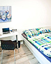 Das lichtdurchflutete Apartment ist mit einer modernen Küche und einem hellen Tageslichtbad mit Dusche ausgestattet. Entspannen Sie bei schönem Wetter auf dem zugehörigen Balkon.Das High-Speed WLAN und Digital TV Gerät im Apartment steht Ihnen kostenlos zur Verfügung. Bettwäsche und Handtücher sind im Preis inkludiert.Das Apartment beinhaltet außerdem einen Schreibtisch/ Arbeitsplatz.Im Waschkeller kann gegen eine Gebühr von 2,20 € pro Waschgang Waschmaschine und Trockner benutzt werden.Ein Stellplatz kann auf Anfrage gegen eine monatliche Gebühr von 50 € angemietet werden.